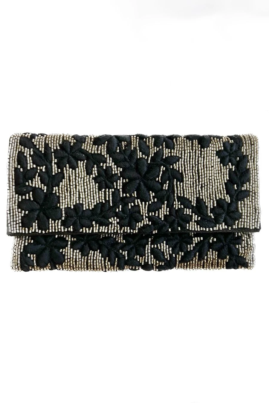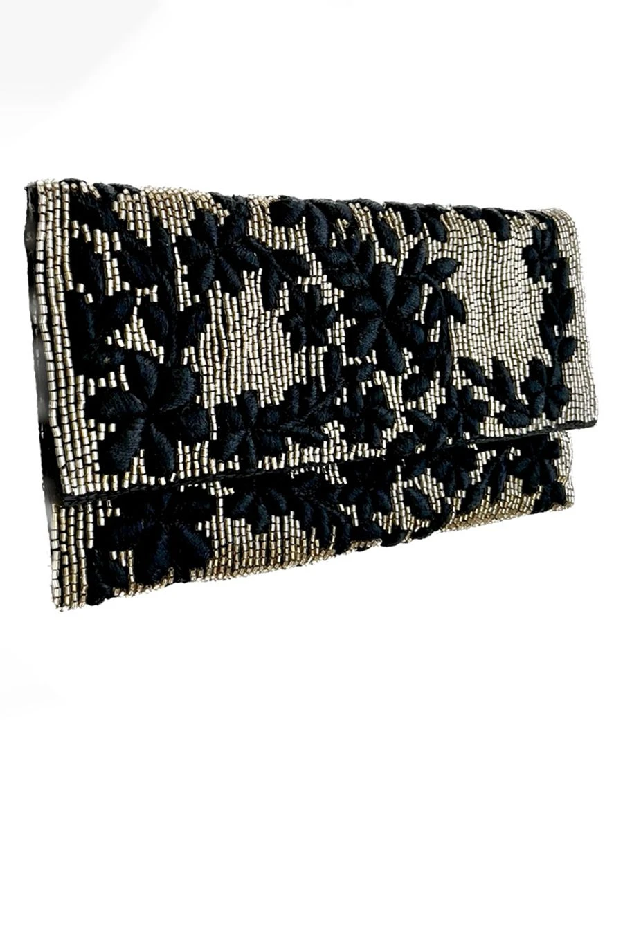 Add a hint of bling to your subtle looks with this understated clutch. Crafted with a silk lining, hand embroidered æAriÆ thread & delicate glass beads come together in this beautiful floral clutch.