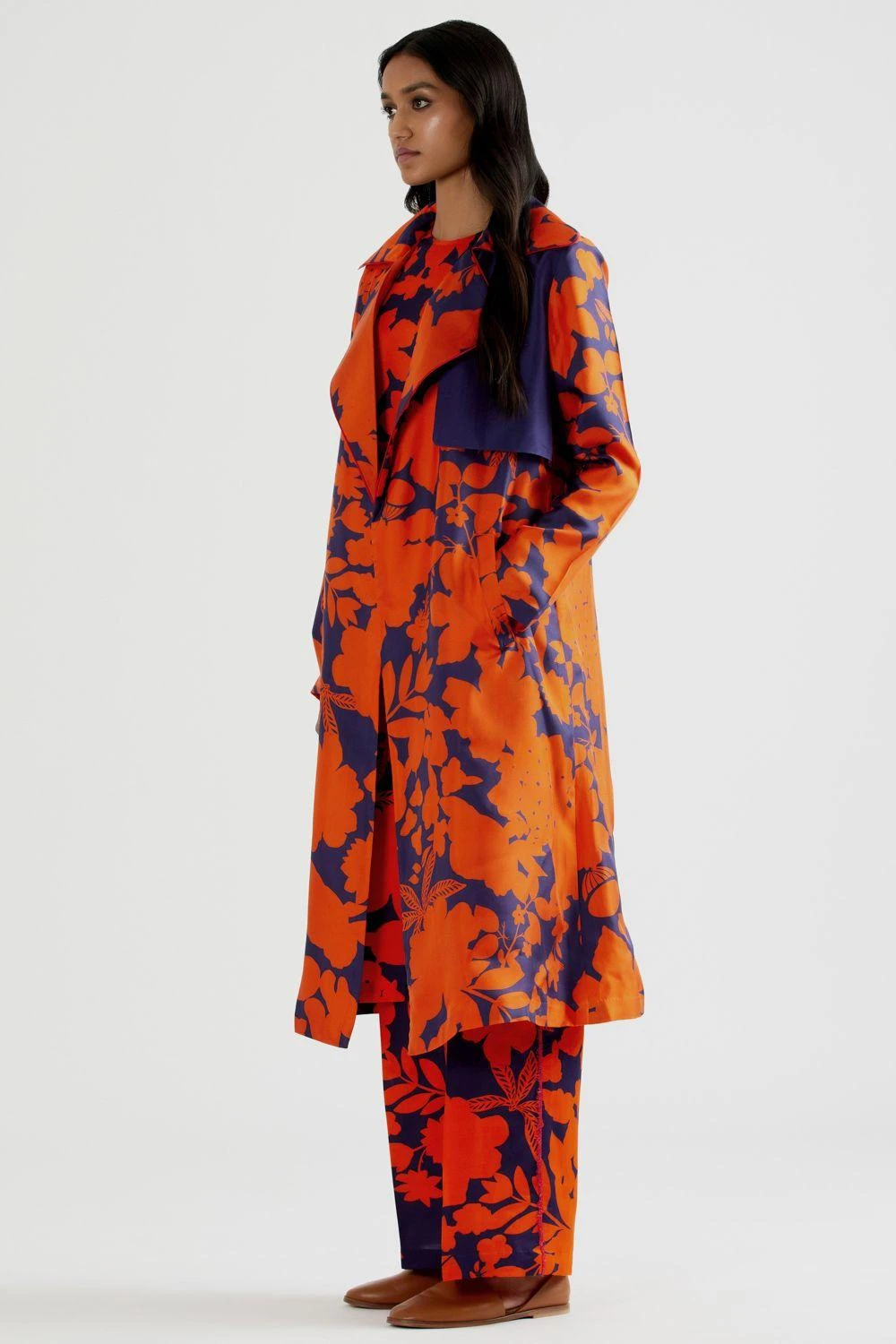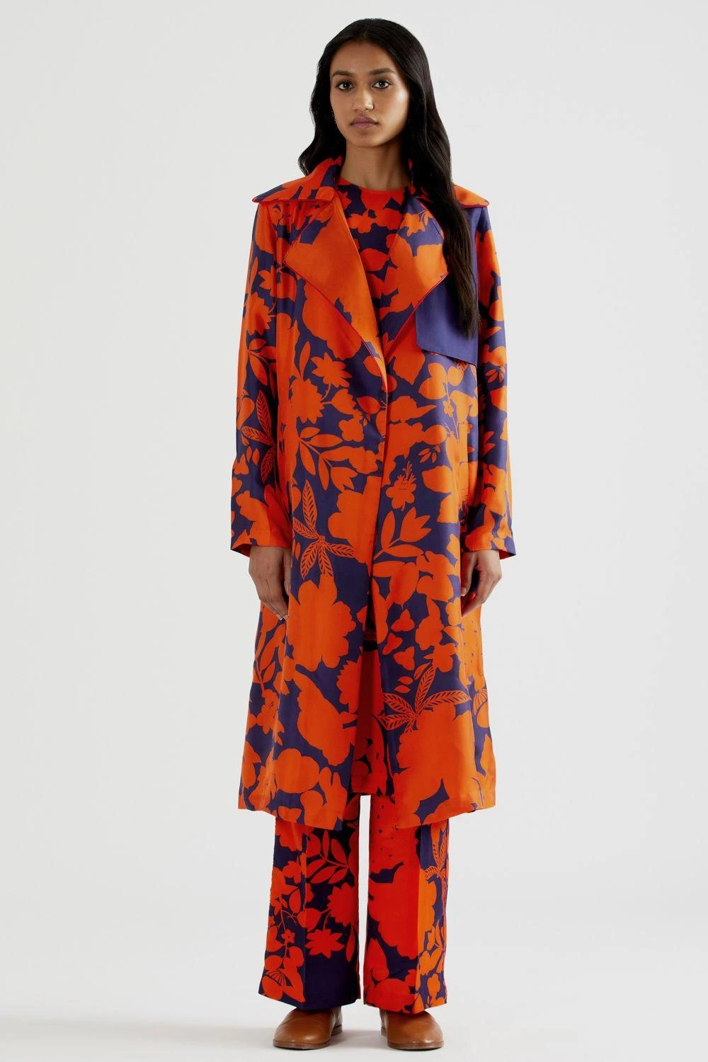 This camouflower twill jacket will surely turn some heads. Designed in silk with a lapel collar, this jacket embraces floral digital prints. The whole compilation of silhouette and prints makes it an exceptional piece.
