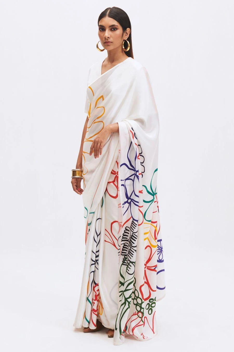 From a formal wedding to a glamorous soiree, this sari is a versatile and timeless addition to your wardrobe. This stunning piece is a celebration of the traditional sari, elevated to new heights with its modern and sophisticated design.
