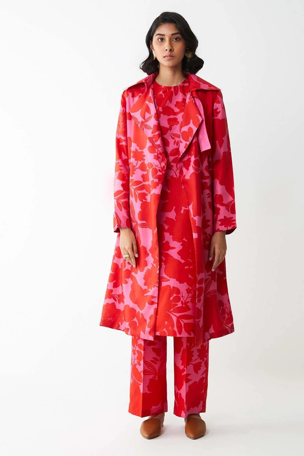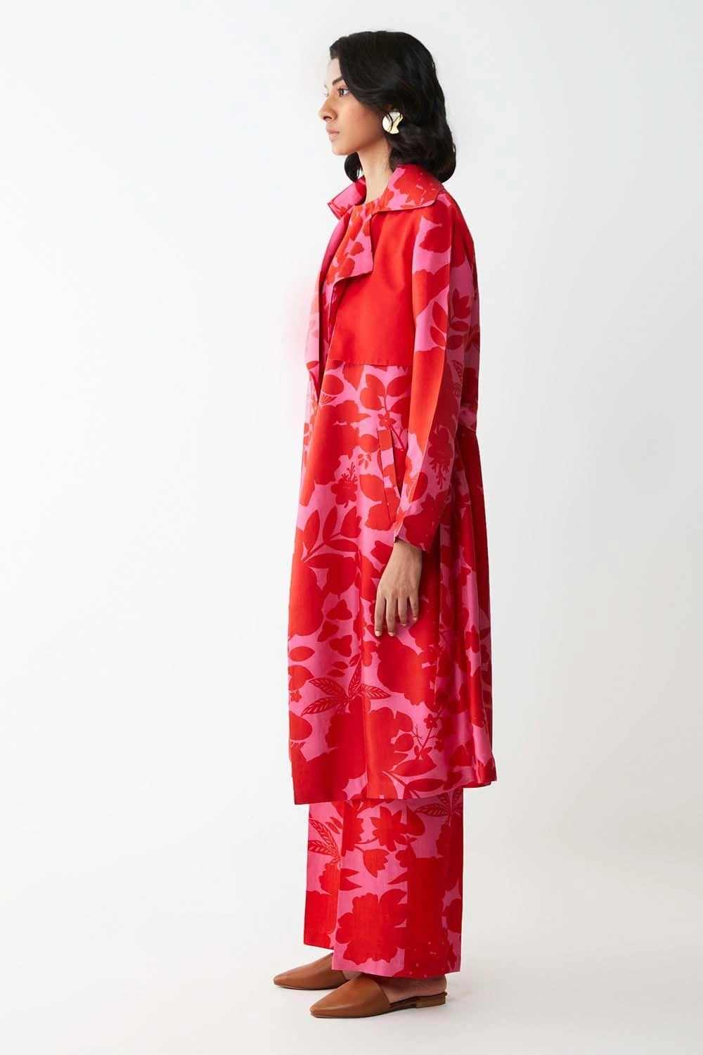 Featuring a silk twill jacket, curated in in a contemporary silhouette on a traditional silk base with mono jaal print. An exceptional amalgamation of modern and traditional. Layer your kurta sets, contemporary wear and even your saris.