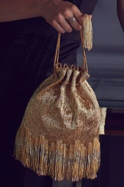 This drawstring pouch can be styled as a sling bag & a potli. It is decadently hand embroidered with lustrous tinted crystals & Japanese micro beads. It comes with an embellished handle. Style it with both Indian & contemporary looks with equal ease.
