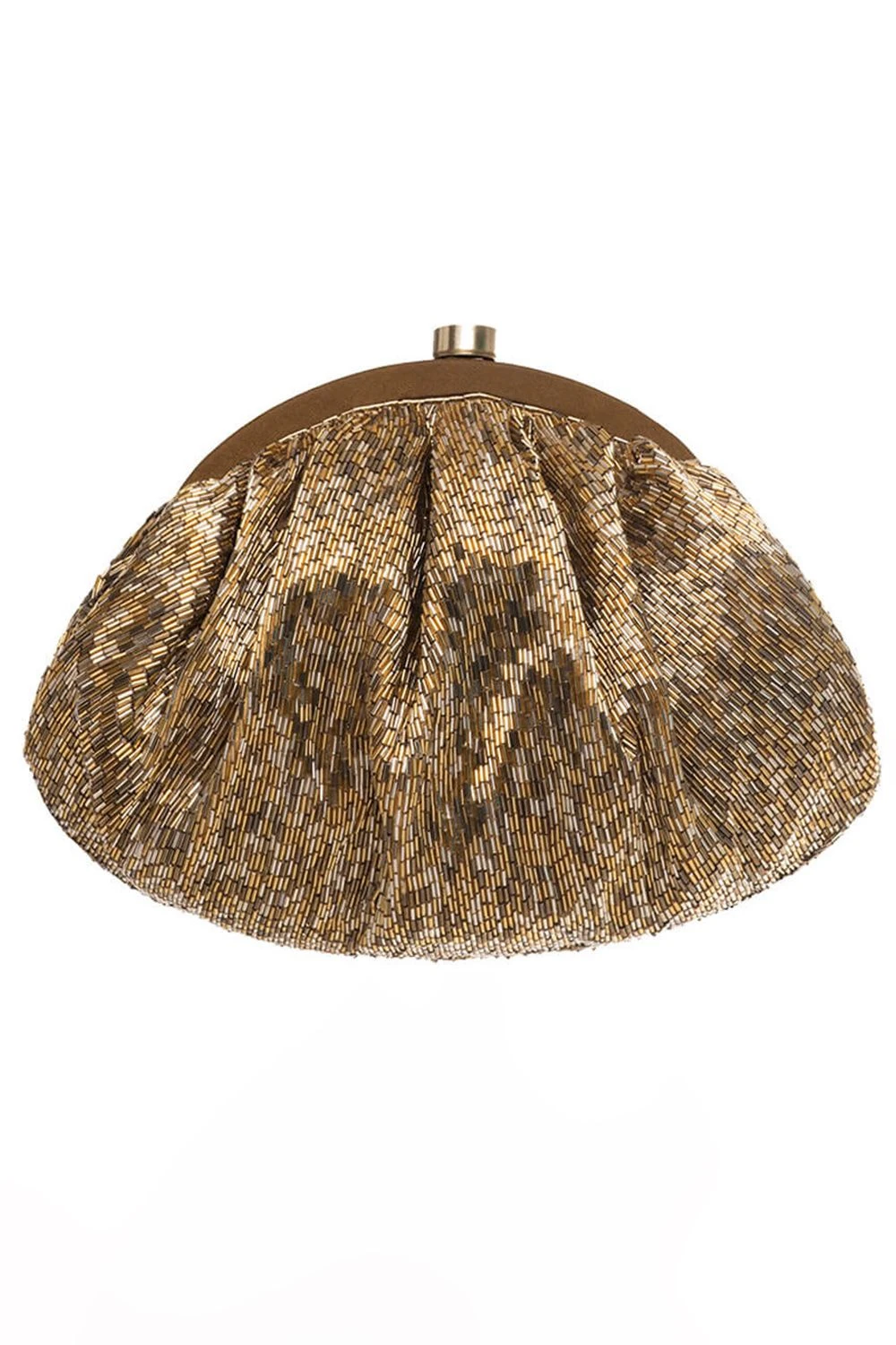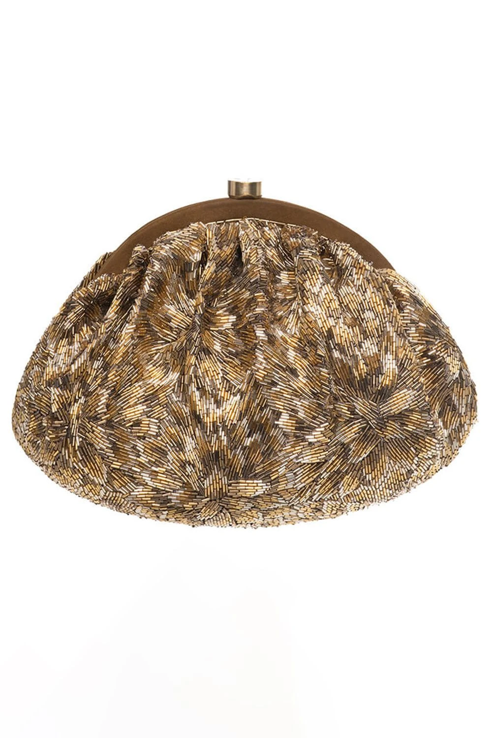 This pouch is intricately hand embroidered with fine Japanese bugle beads. The design reflects a bouquet of daisies with an ombre effect. It has a suedette lining & a long chain handle. Style it with both Indian & contemporary looks with equal ease.