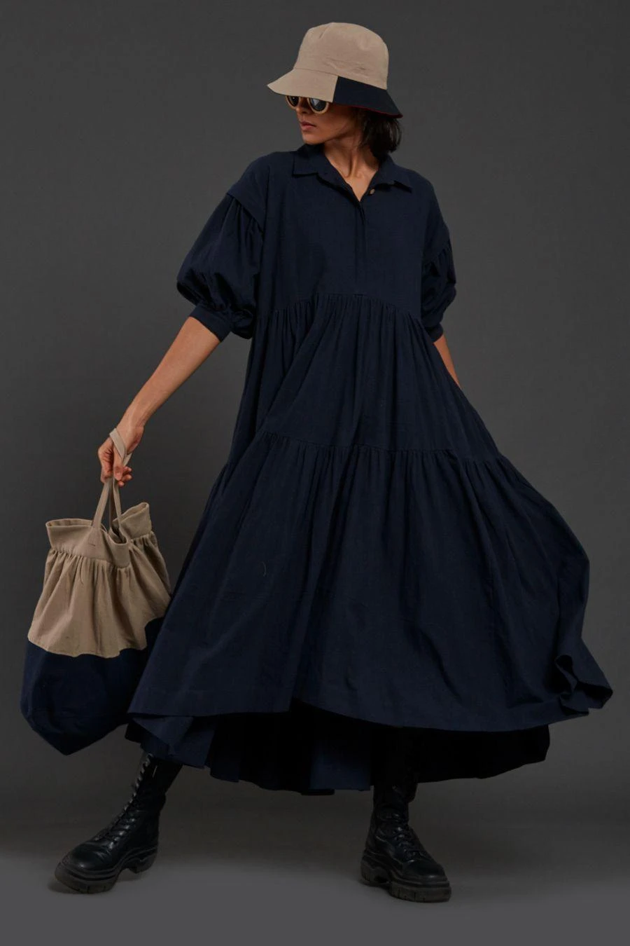From Your Work Desk To The Brunch Table & From Lounging At Home To Catching Flights, You Can Always Count On This Dress. Crafted In Cotton, This Ankle-Length. Tiered Shirt Dress Features Extended Balloon Sleeves, Front Button Opening & Side Pockets.