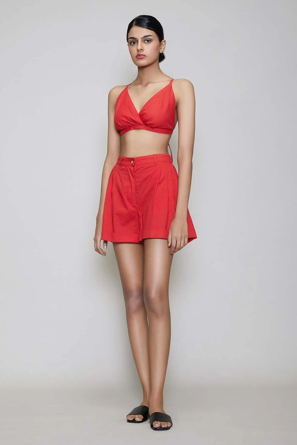 This bright bralette & shorts co ord set is perfect for the summer. This stylish monochrome look can be styled with understated accessories & is perfect addition to your vacation wardrobe.