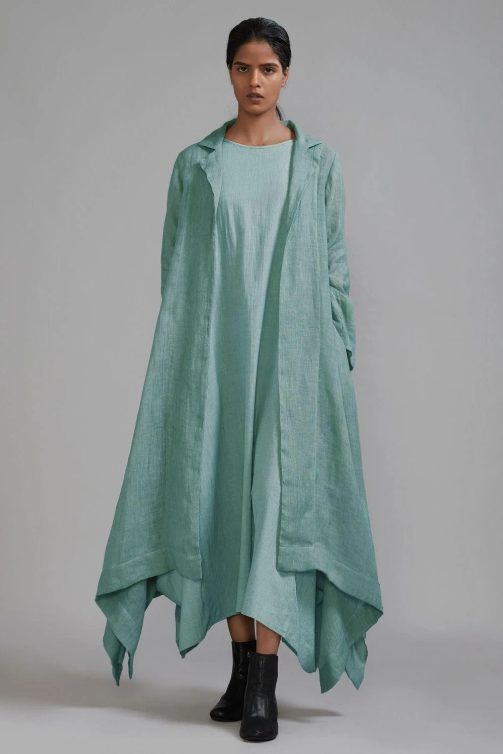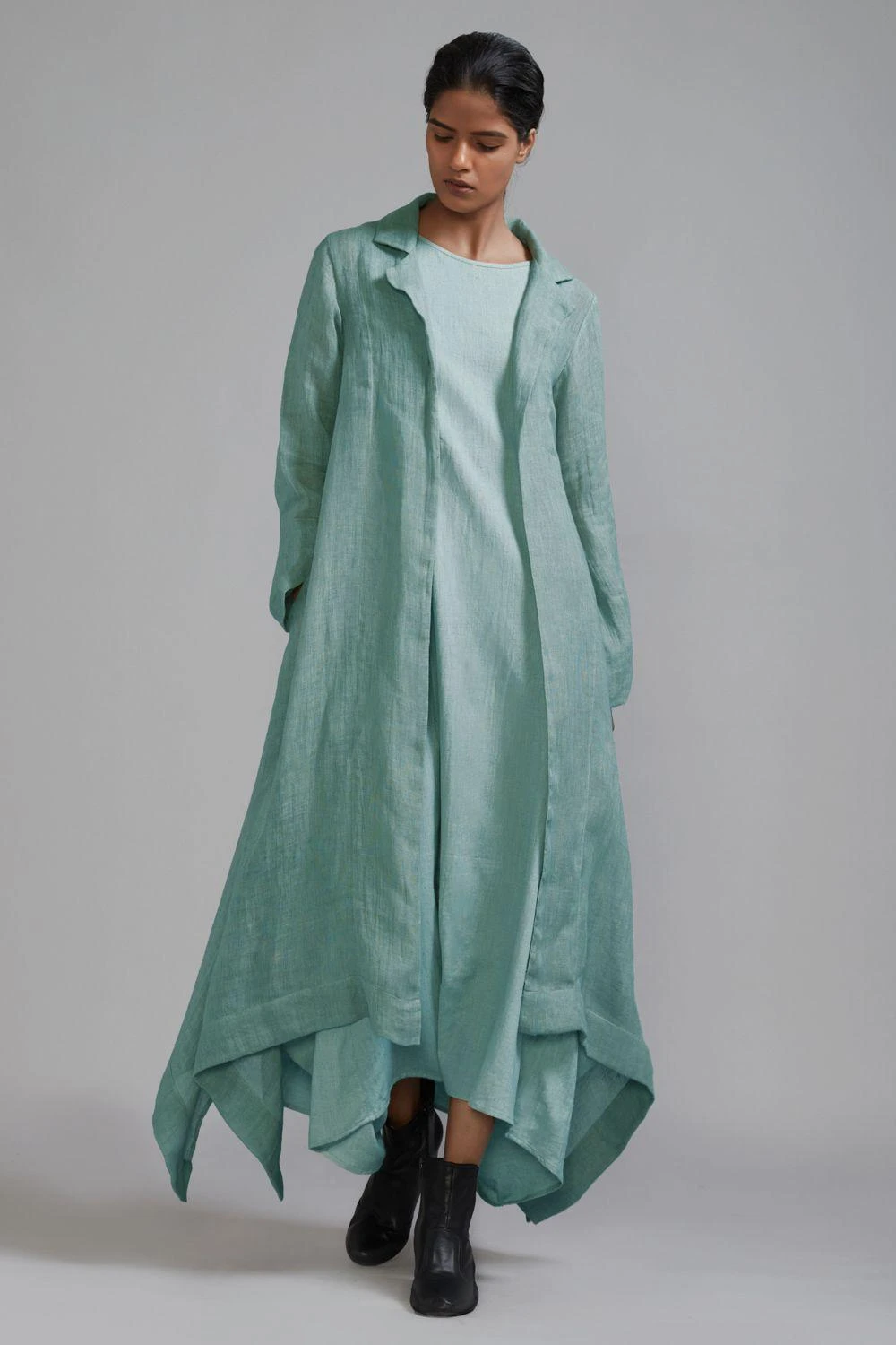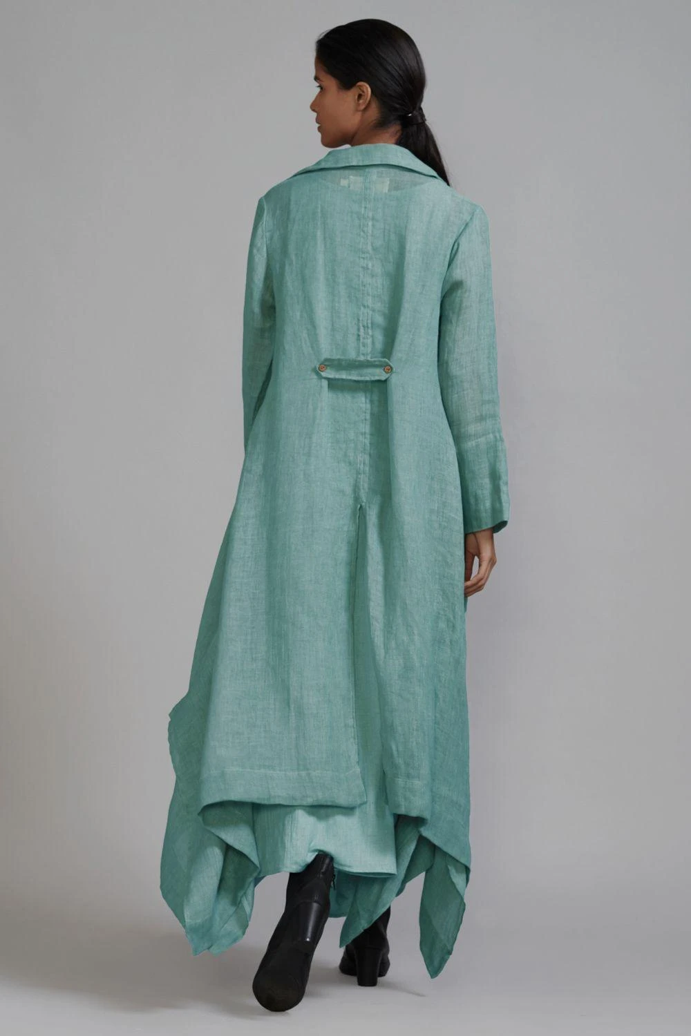 Step into the world of style and sophistication with this handspun Trench Blue Koza Jacket. This versatile piece elevates any outfit with its timeless appeal.