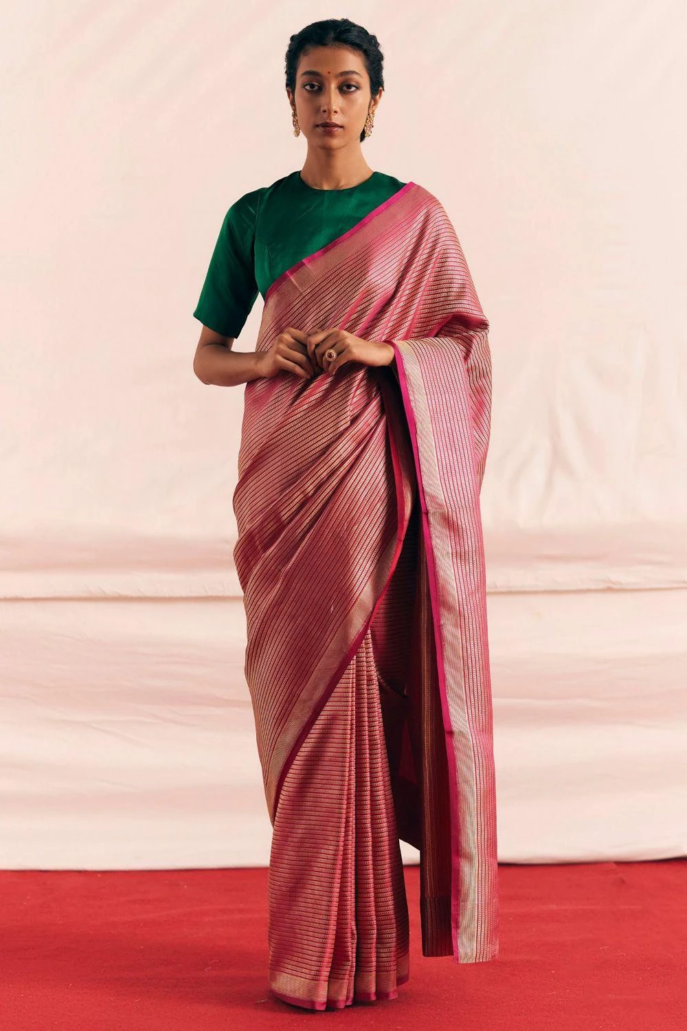 This Woven and Embroidered Sari is a masterpiece of intricate craftsmanship, blending traditional weaving techniques with exquisite embroidery to create a unique and elegant look that adds a touch of sophistication to any ensemble.