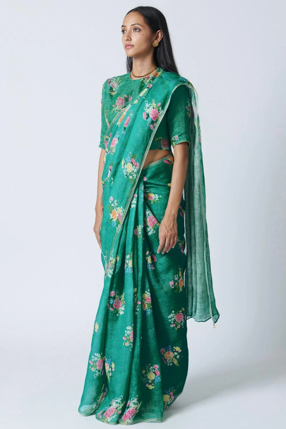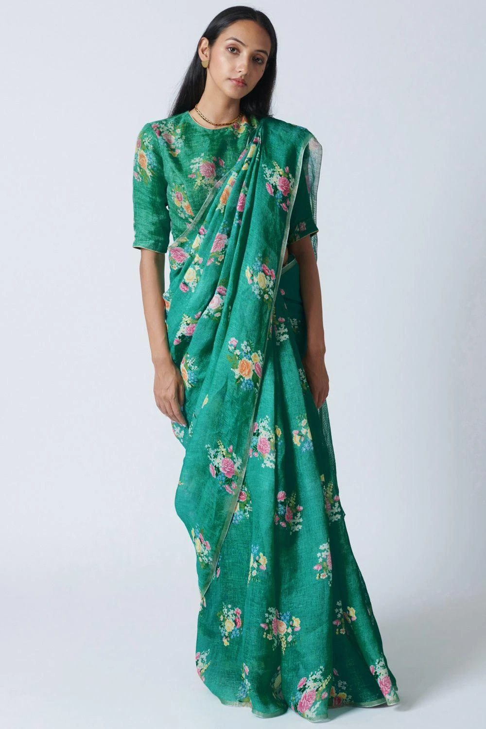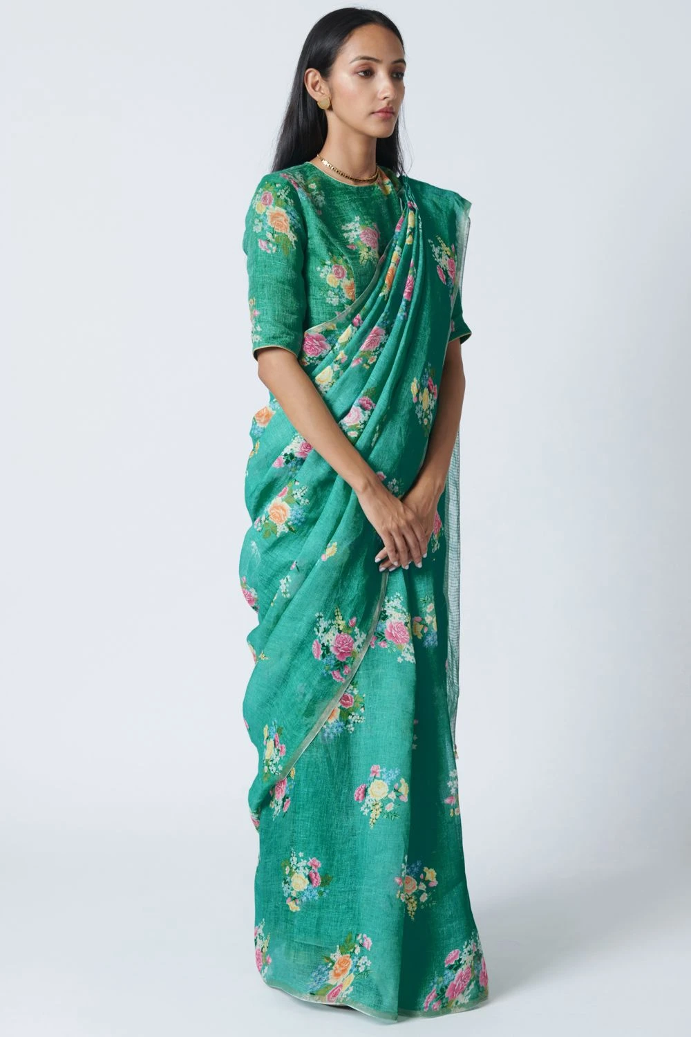 Material/Fabric : 100 count Handwoven Linen with Silk Core Zari Border