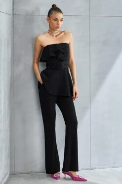 Look effortlessly stylish with this peplum set. The floral hand embellishment adds a touch of ethereal beauty, turning heads wherever you go. Add a pair of dangler earrings to complete the look.