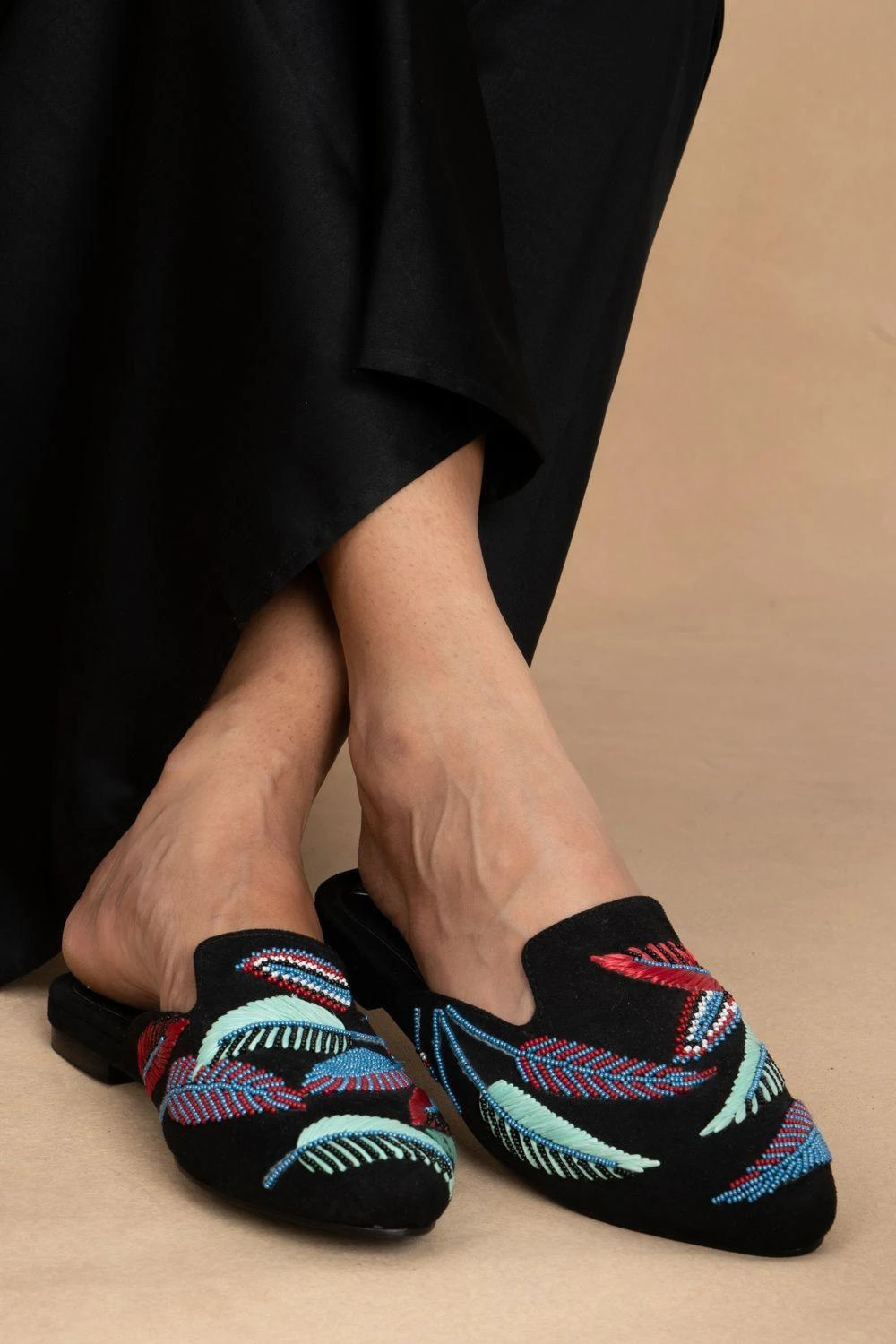 Inspired by the detail and beauty of palm leaves spread on a soft suede base, these are a pair of luxe statement shoes that are resort ready. You can team it up with both Indian & contemporary looks.