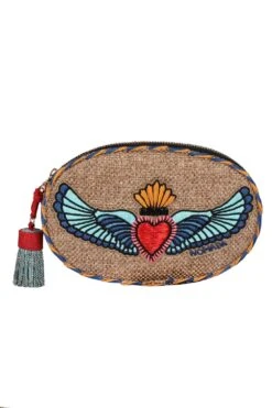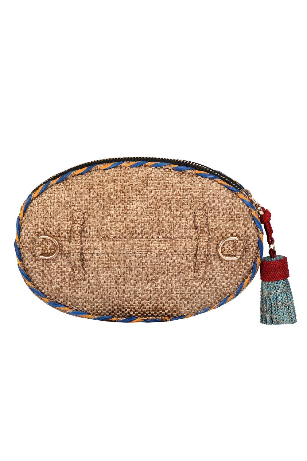 Add a fun contemporary twist to your festive look with this quirky arm candy. It is hand embroidered with raffia and bead work. You can style it as a clutch or wear it as a belt bag with your casual looks.