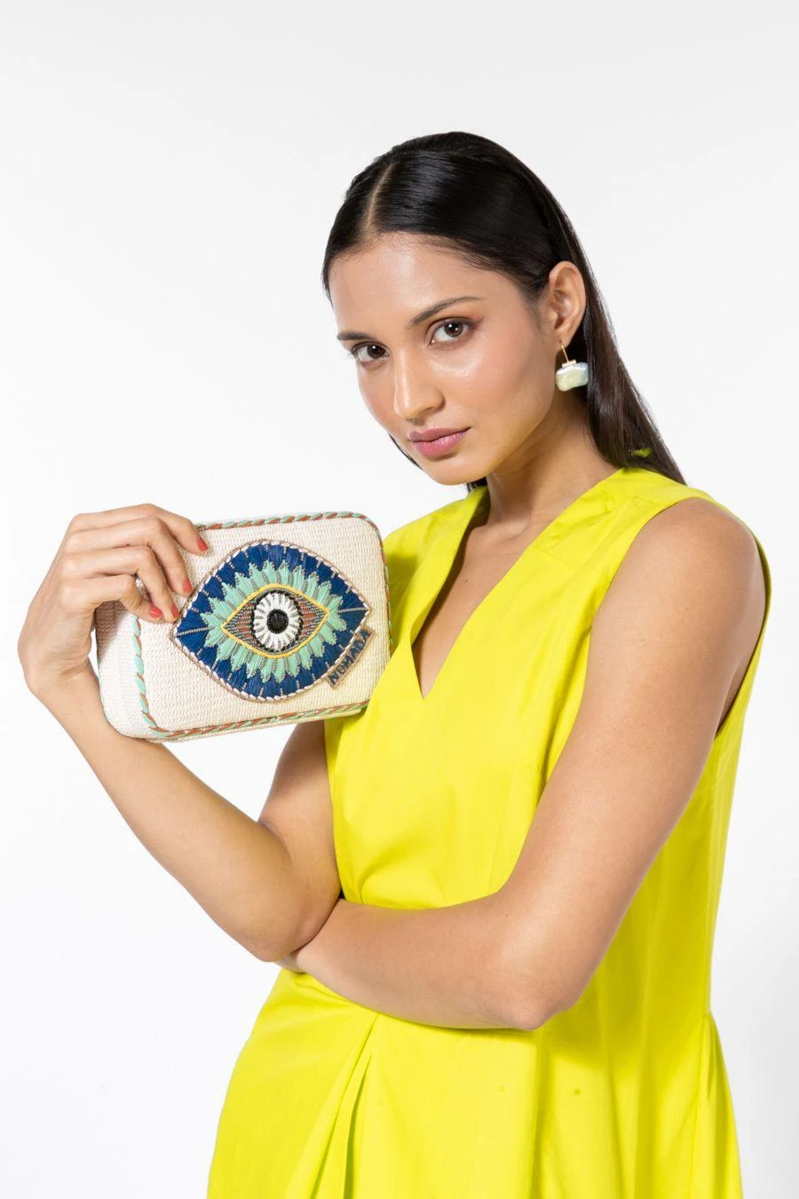 Add a fun contemporary twist to your festive look with this quirky arm candy. It is hand embroidered with raffia and bead work and features a fringe detail. You can style this clutch with a cocktail party look.