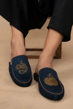 A cool mismatched motif pair of mules with gorgeous detailing, with a fit that will make your feet like they are in paradise. You can team these cutdana embellished mules with both Indian & contemporary looks.