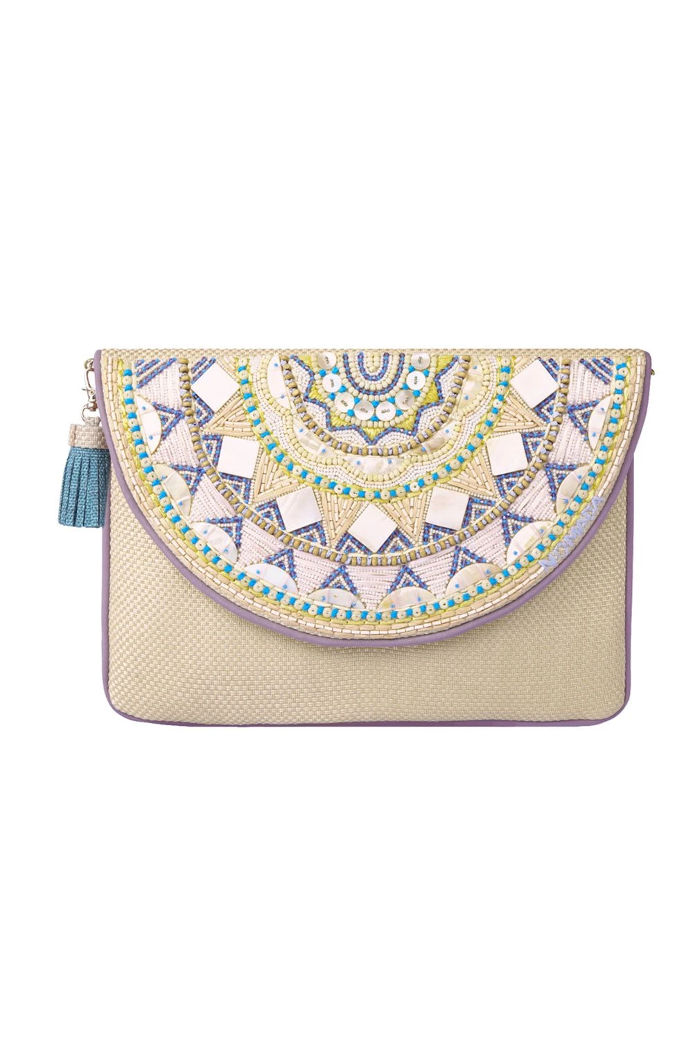 Add a fun contemporary twist to your look with this quirky arm candy. A gorgeous palette of light pastels make this bag a must have that will elevate your casual or dressed up ensemble.