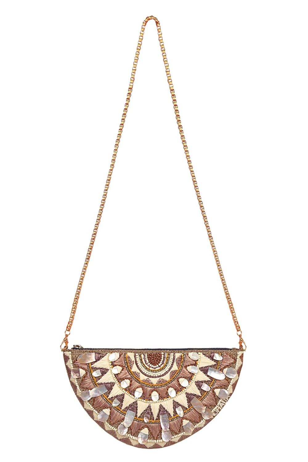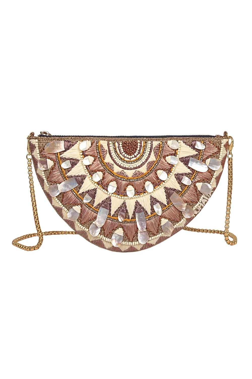 Add a fun contemporary twist to your festive look with this quirky arm candy. It is hand embroidered with raffia and bead work. You can style it as a clutch or wear it as a belt bag with your casual looks.