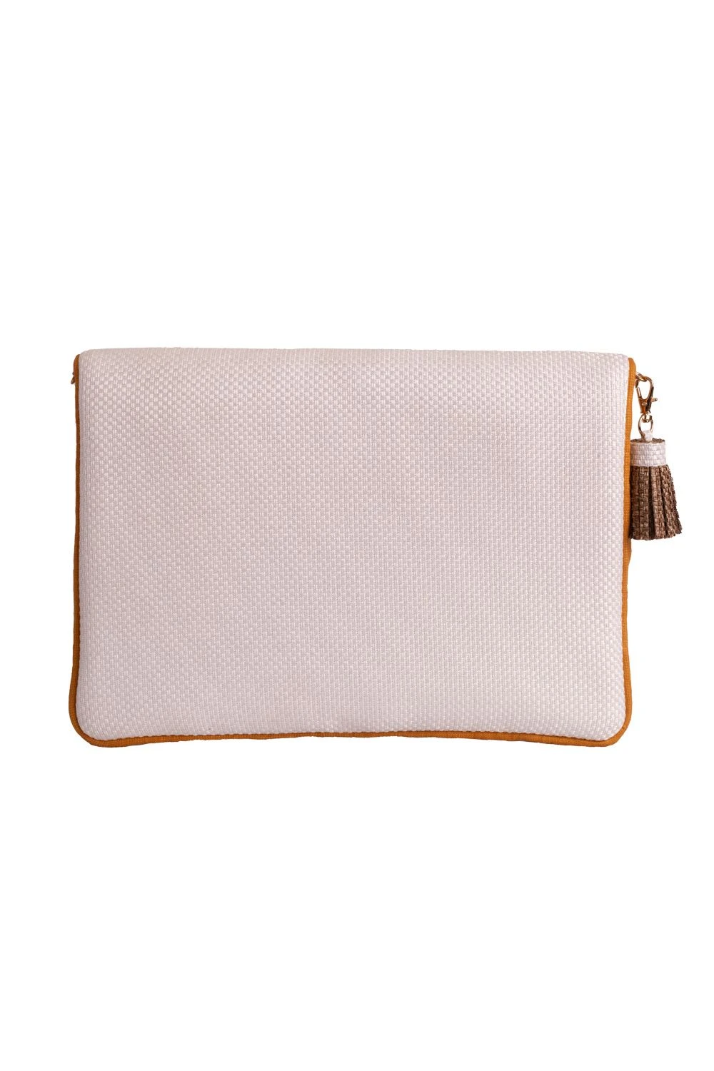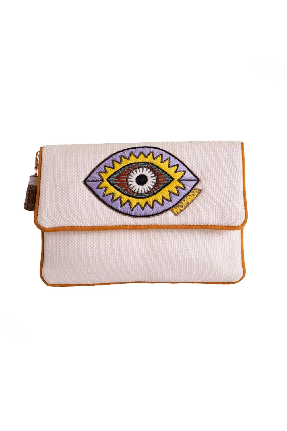 Add a fun contemporary twist to your festive look with this quirky arm candy. This oversized flap features a hand embroidered evil eye on the front. It comes with a detachable chain to use it as a clutch or sling.