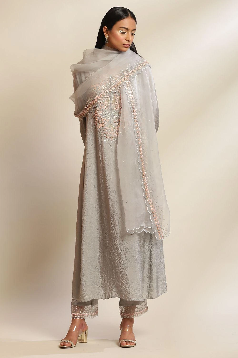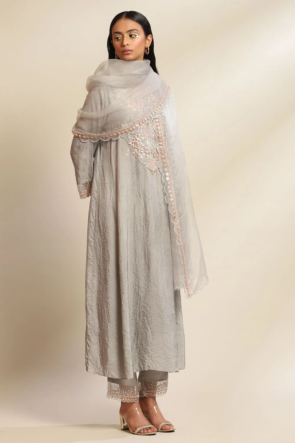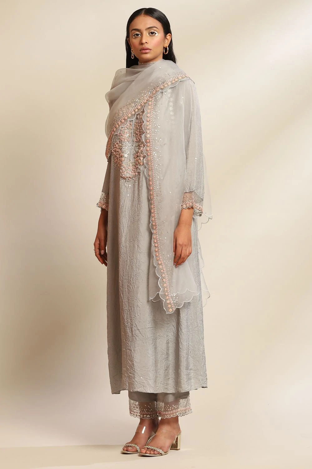 Wrap yourself in the sheer elegance of this dupatta. Adorned with delicate sequins & beads on the scallop edge, it adds a touch of glamour to any ensemble. Embrace the sophistication & grace of this stunning accessory.