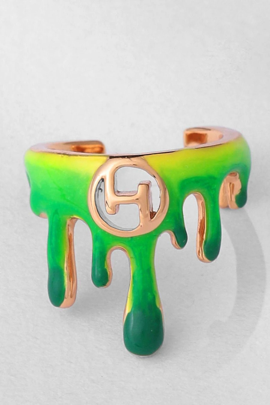 This midi ring in acid green embraces an artistic aesthetic by featuring a dripping accent in its design. An exquisite and timeless creation, the ring is handcrafted in a tonal enamel finish that elegantly adorns the mid finger.