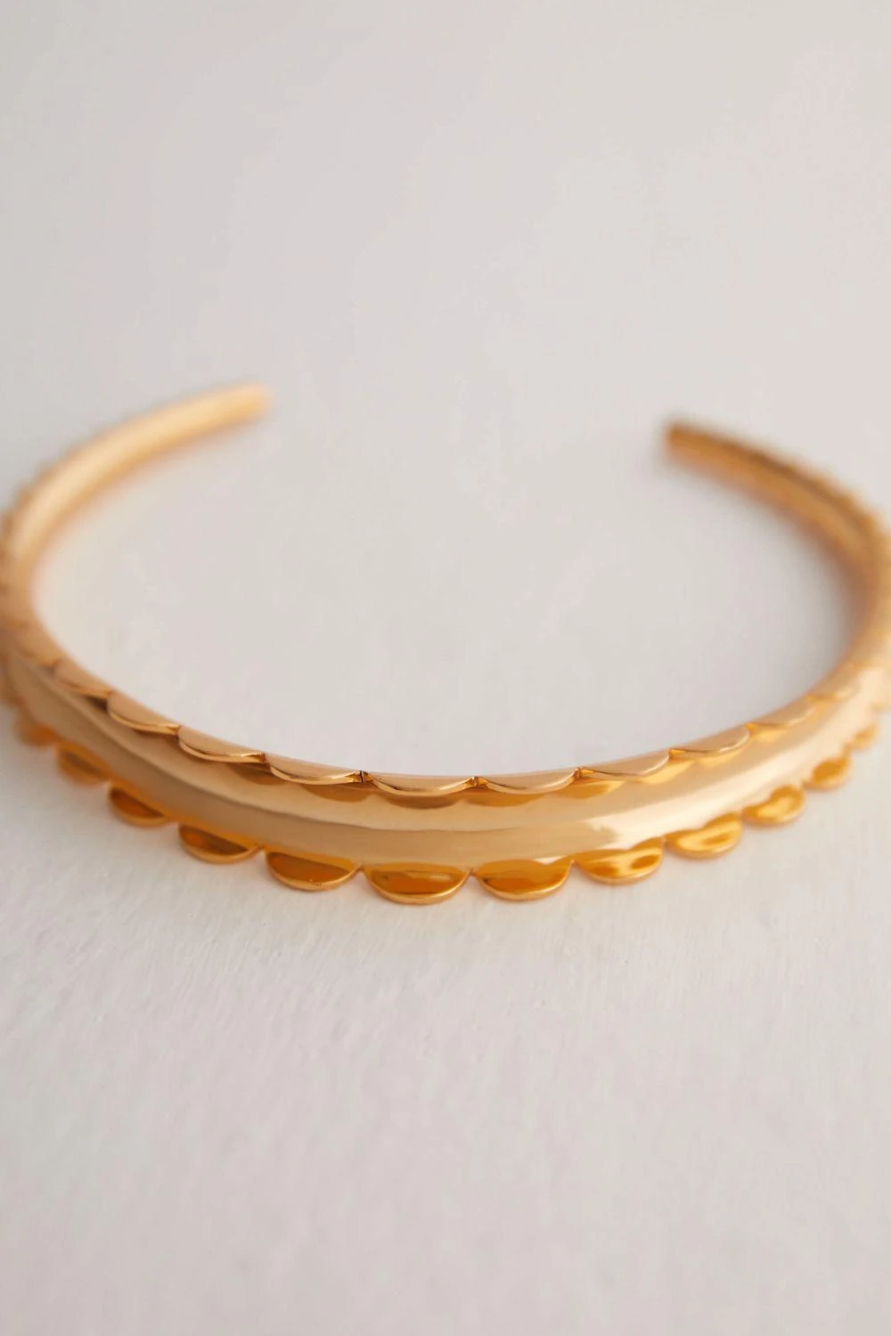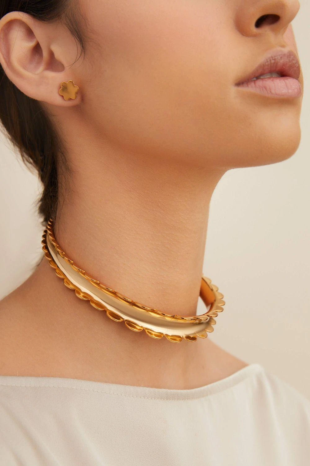 22K gold is moulded into a magical masterpiece with exquisite attention to detail in this OH poppi scallop choker. You can style this piece with a slip shoulder top or dress for an elegant look.