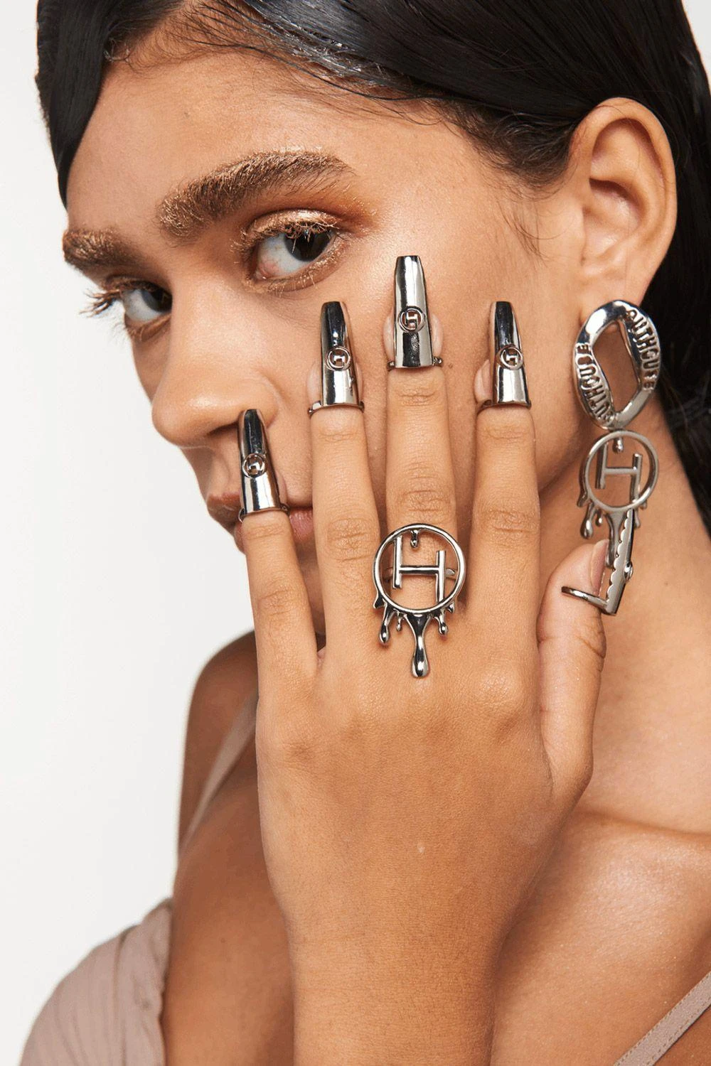 This ring presents itself in a classic 22 KT silver plating, that can be adorned to create a signature look. This charismatic creation can be adorned alone or even stacked with other pieces from the collection, to create the perfect evening look.