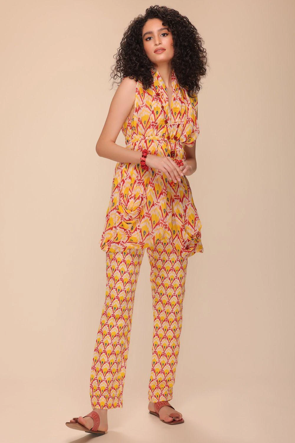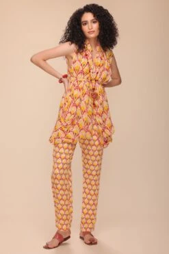 Indulge in the epitome of refined style with these pants featuring a waistband with back elastic, ensuring both comfort & a flattering fit. The side zipper adds a touch of sophistication, while the side pockets provide functionality and convenience.