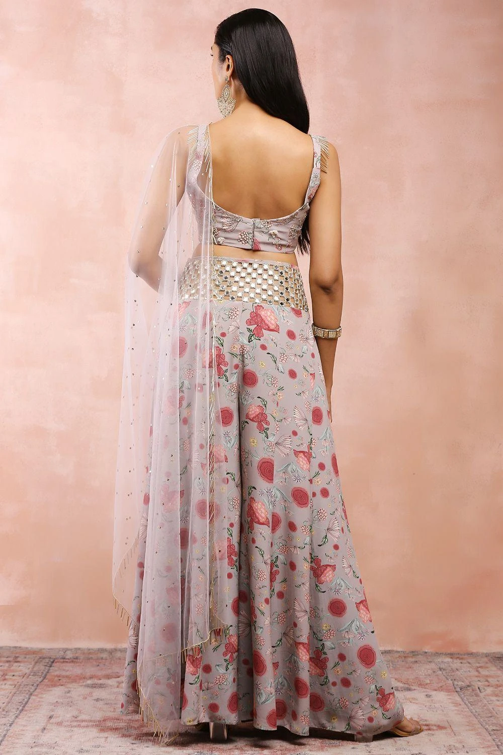 Step into a world of timeless elegance with this gulbagh choli and sharara ensemble. Adorned with intricate embroidery and a cutwork embroidered belt, it exudes unparalleled charm. The mukaish net dupatta adds a touch of ethereal beauty.