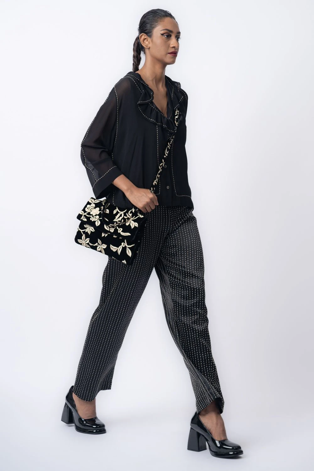 Elevate your style with this classic Black Top. A wardrobe essential that exudes timeless charm and versatility. Embrace simplicity with sophistication.