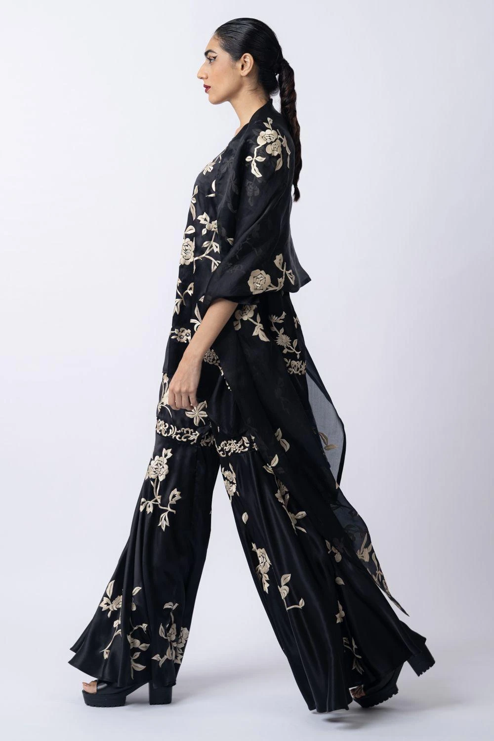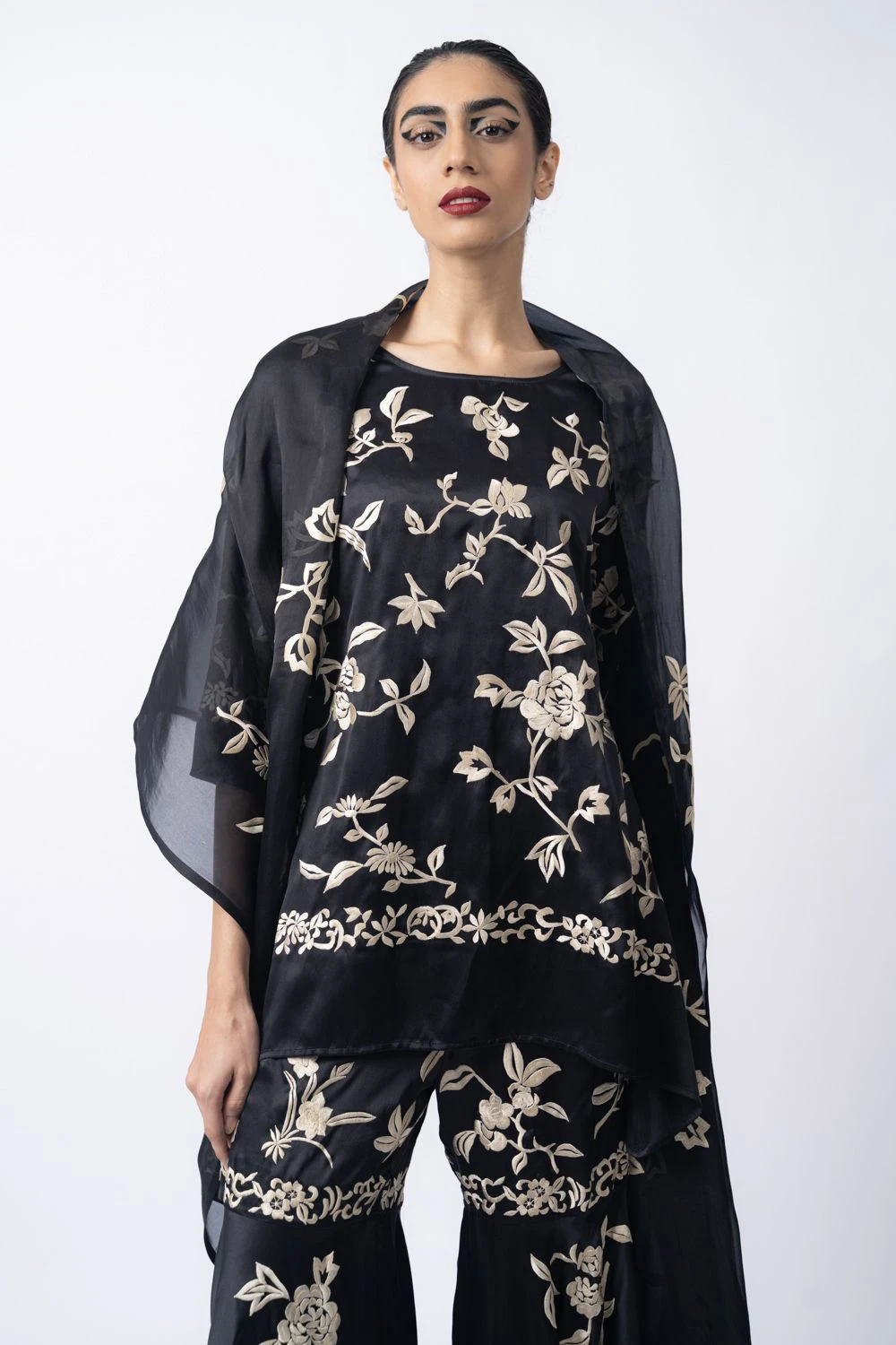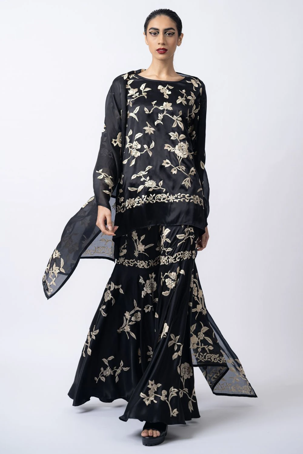 Step into the festive season with grace in this floral dupatta. A perfect blend of tradition & style, it adds a touch of elegance to your ensemble. Pair it with the floral embellished kurta & sharara from the collection to complete the set