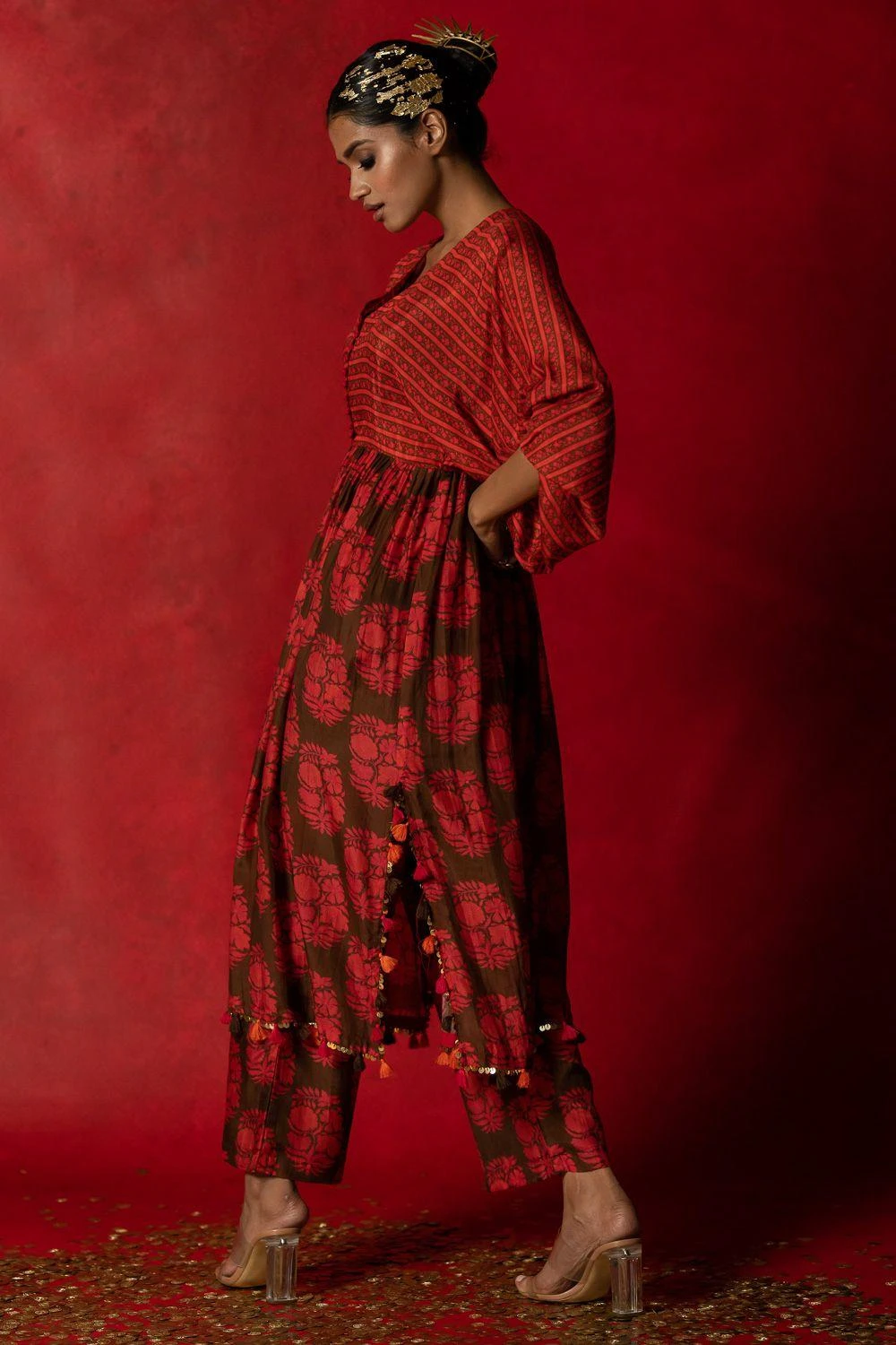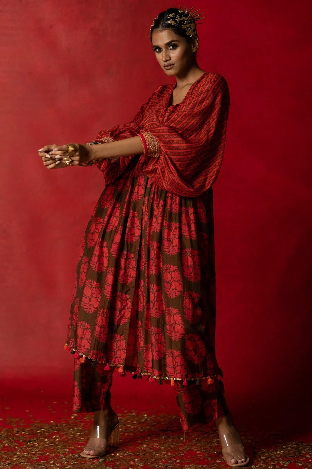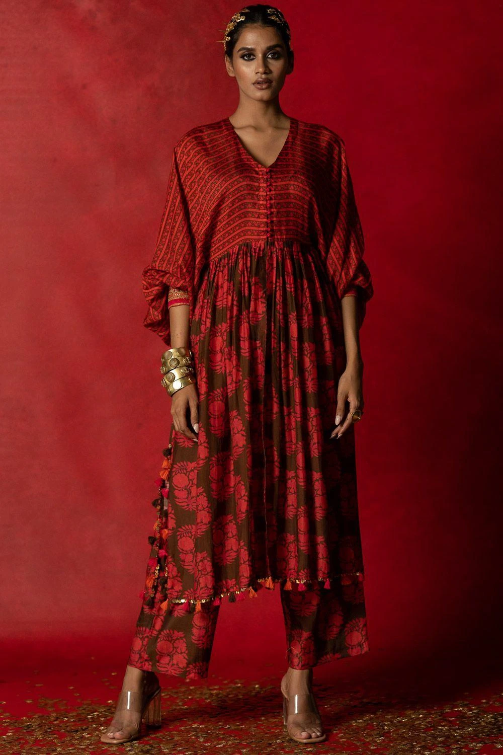Give your festive closet a vibrant, artisan aesthetic with this kurta set. Crafted in cotton silk, this set comes with an aari embroidered kurta paired with straight fit pants. Style this set with a pair of statement earrings to complete the look.