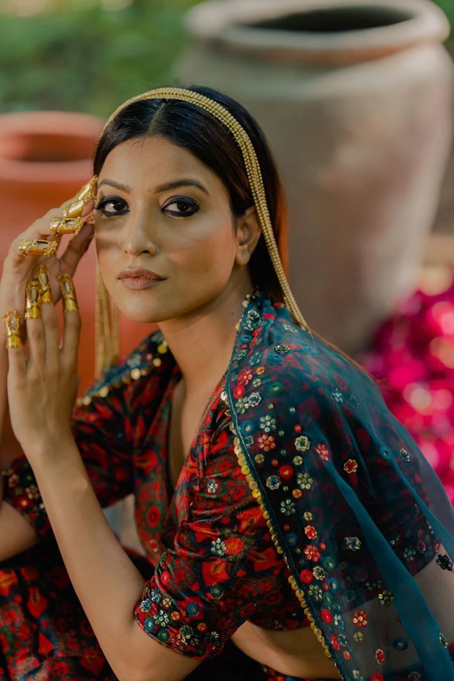 Material/Fabric : Blouse And Lehenga: Velvet, Dupatta: Organza