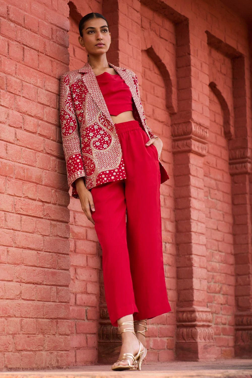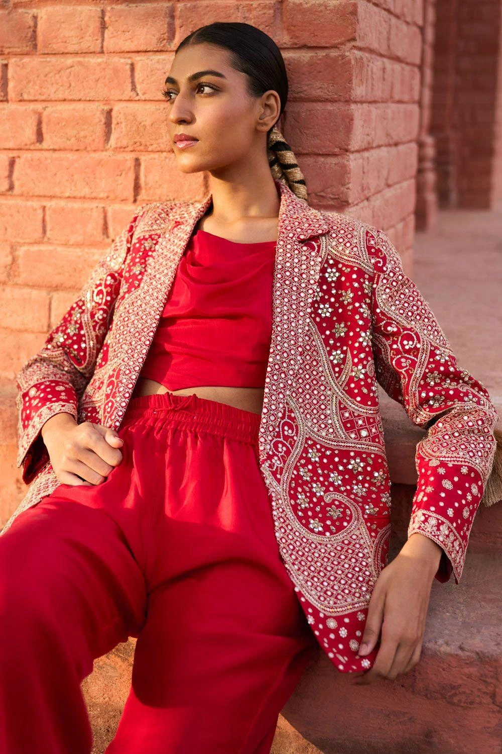 Elevate your ensemble with this Embroidered Jacket Set. This exquisite set beautifully marries artistry with modern design, promising a chic and sophisticated look, perfect for a range of occasions.