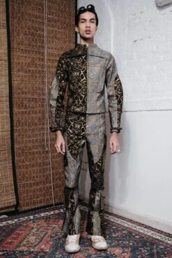 Command attention in QUOD’s black & grey denim shirt jacket. With gold metallic hand-block monogram prints, utilitarian zipped panels & a shaped pocketed back, it’s a bold blend of style & function. Perfect for street-style statements.