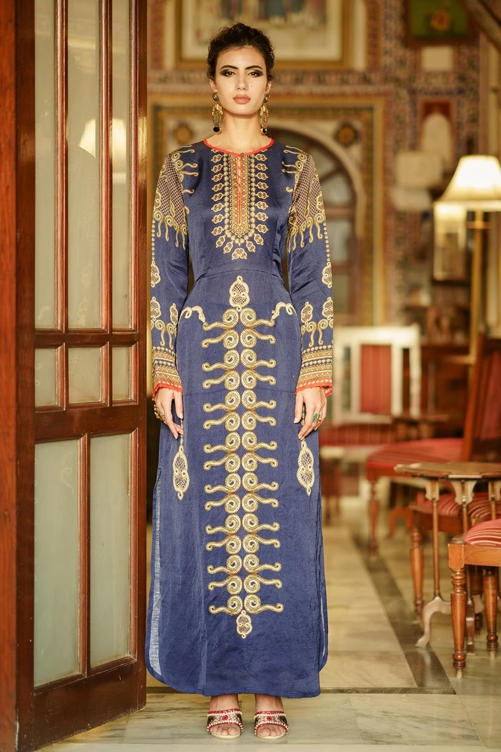 This stylish printed tunic set is set in pure silk. This timeless ensemble is perfect for cool autumn or winter days.
