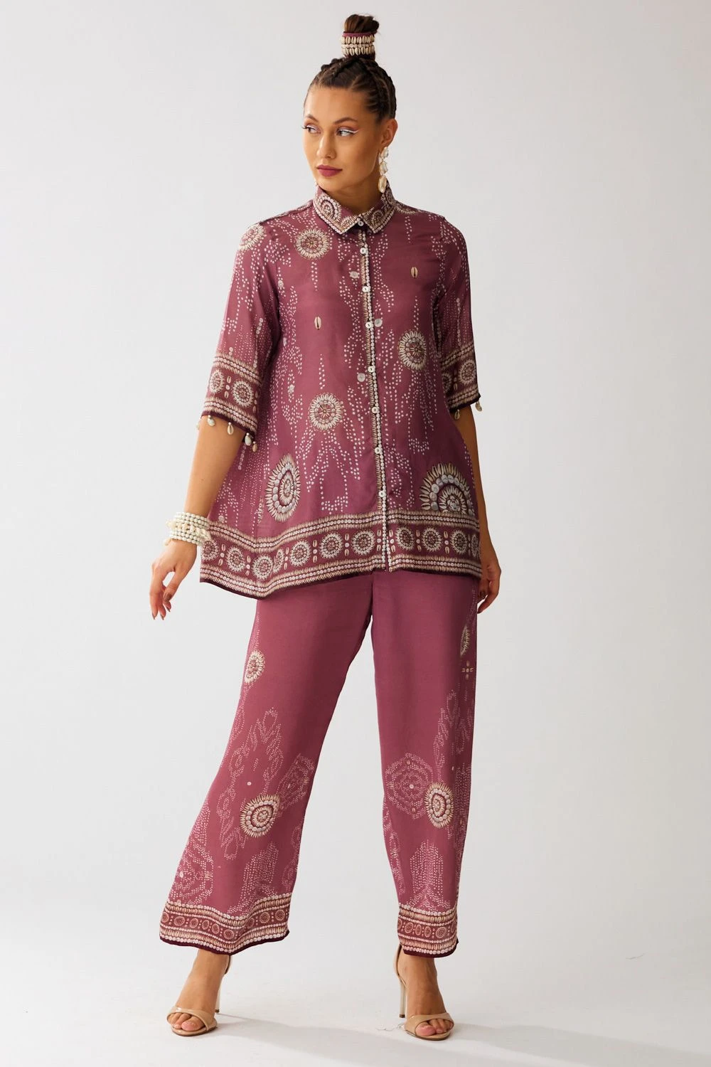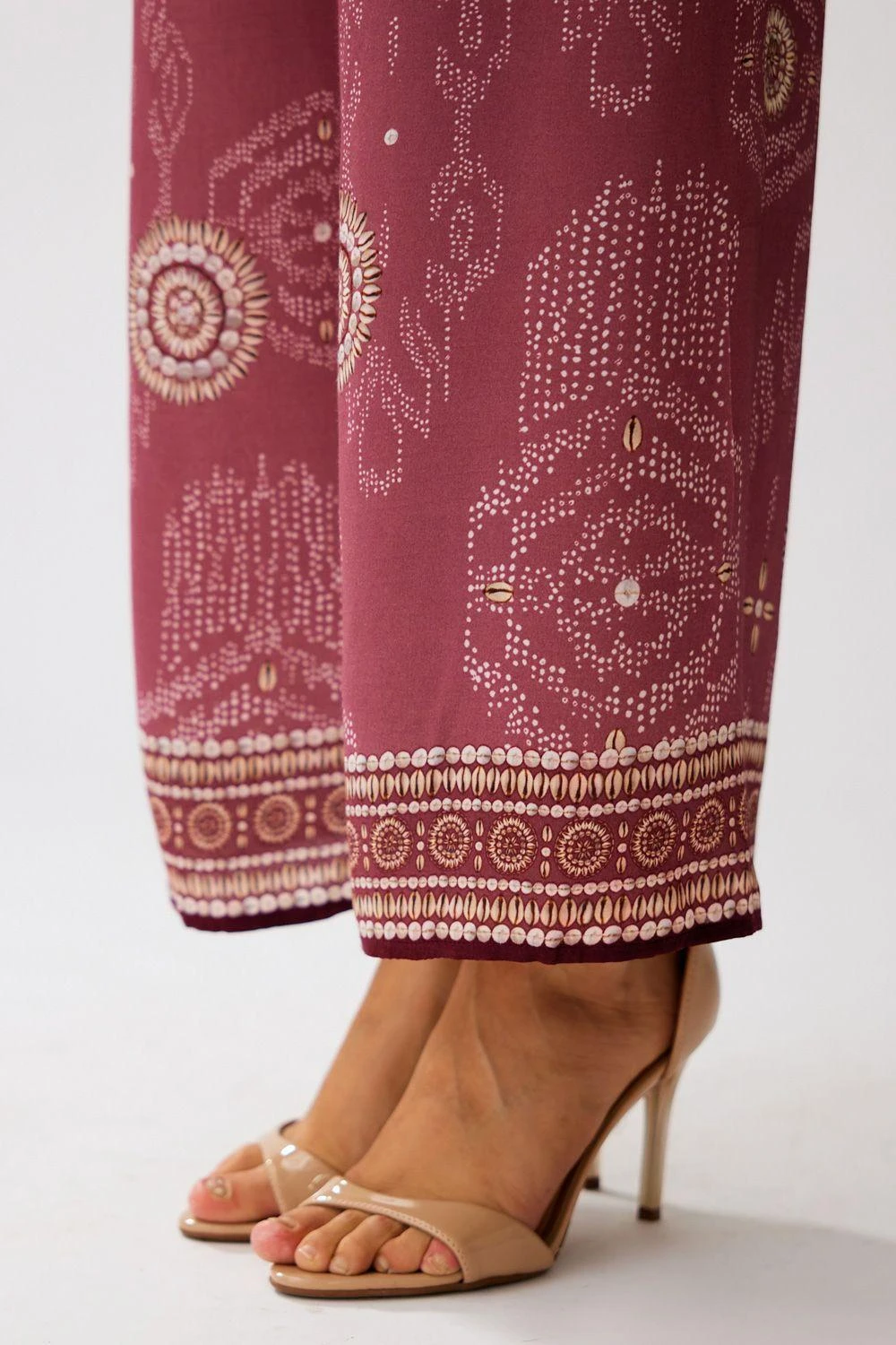 Crafted in satin, these vintage rose pants feature a floral print all over. Pair these bottoms with the floral poncho from the collection to complete the set.
