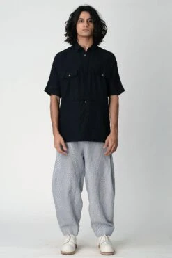 With hand woven linen stripes, these grey lounge pants are perfect for travel. Wear it with a white shirt and woven flats for a beach morning.