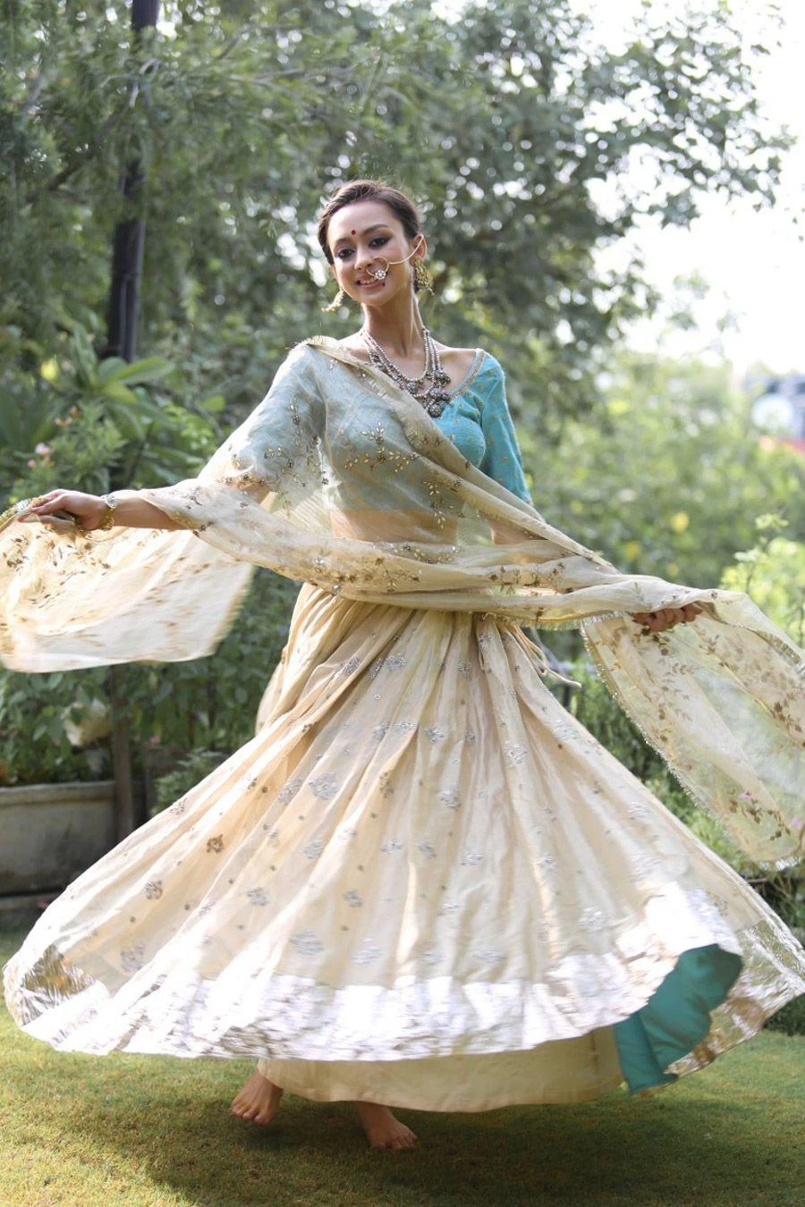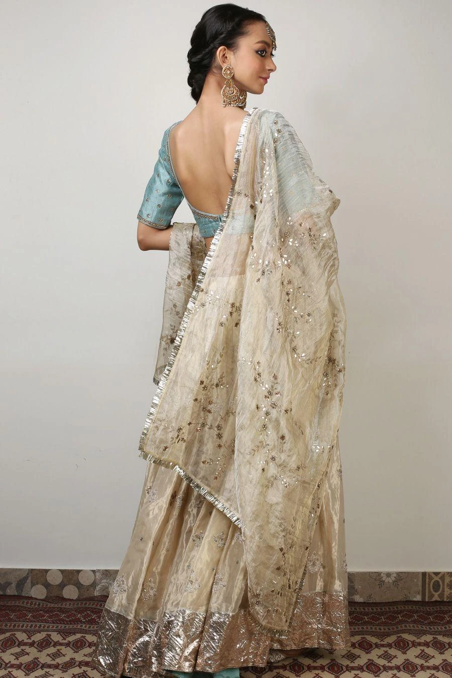 Material/Fabric : Lehenga- Benarasi Tissue, Blouse- Raw Silk , Dupatta- Tissue Chanderi
