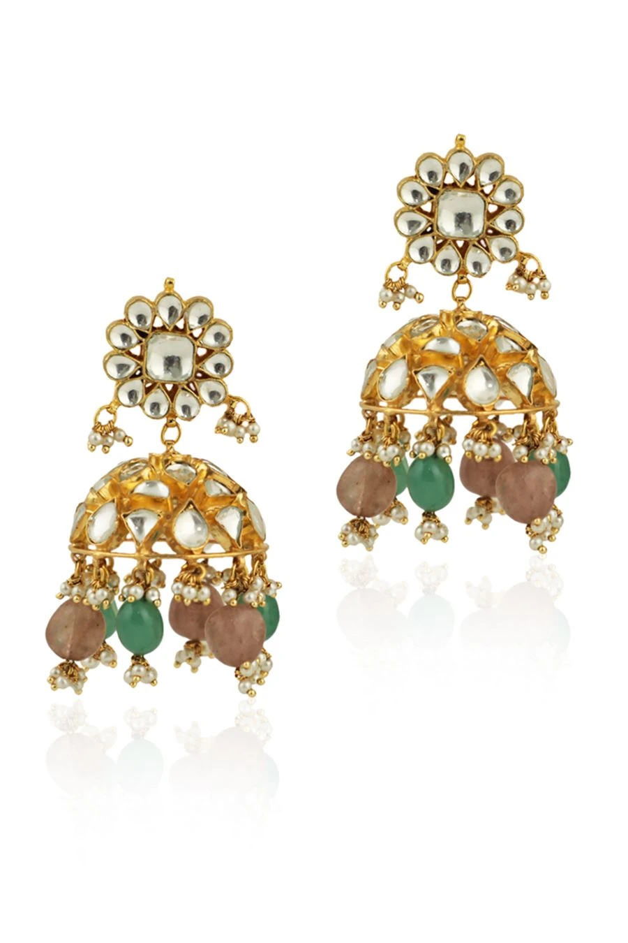 Accentuate your festive looks with this necklace set. Crafted in a silver & copper mix, this set comes with a necklace with intricate pink & green beadwork paired with jhumka earrings. Style it with an anarkali or lehenga to complete the look.