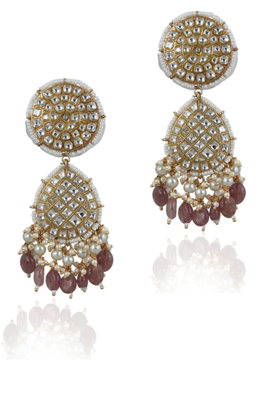 Accentuate your festive looks with this pink & green necklace set. Crafted in a silver and copper mix, this set comes with a jadtar beaded floral necklace paired with matching earrings Style them with an anarkali or lehenga set to complete the look.