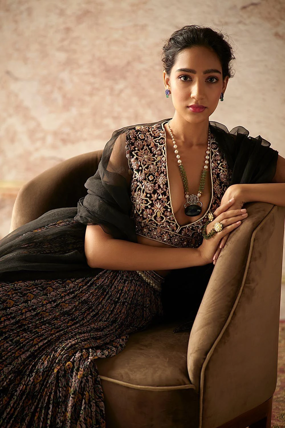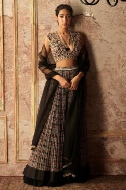 Material/Fabric : Blouse- net, lehenga- chiffon, dupatta- organza