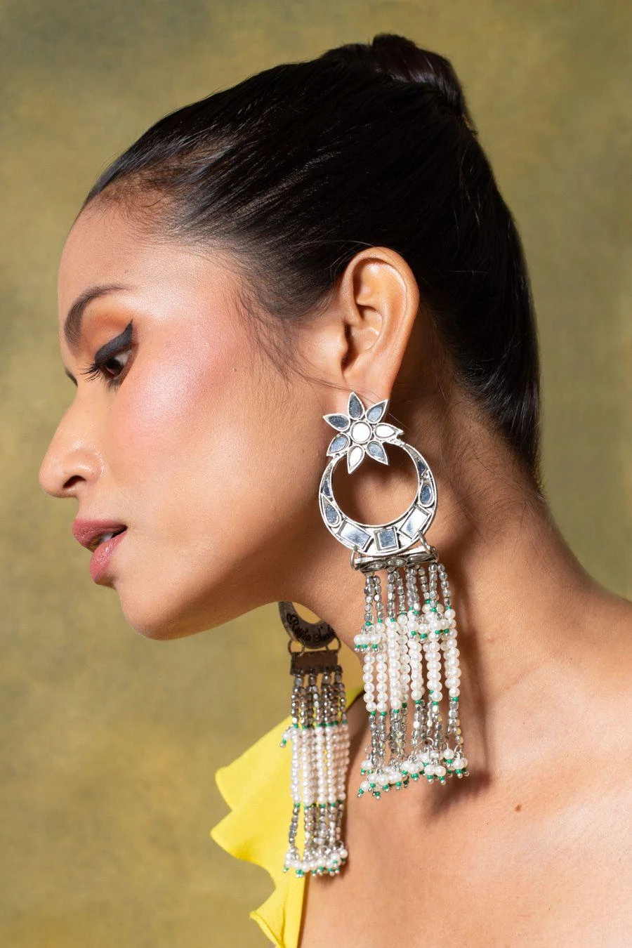 The lunar theme of the earrings adds a touch of mystique, evoking the romanticism of moonlit nights & starry skies. The iridescence of the pearls creates a shimmering effect making these earrings perfect for any occasion.