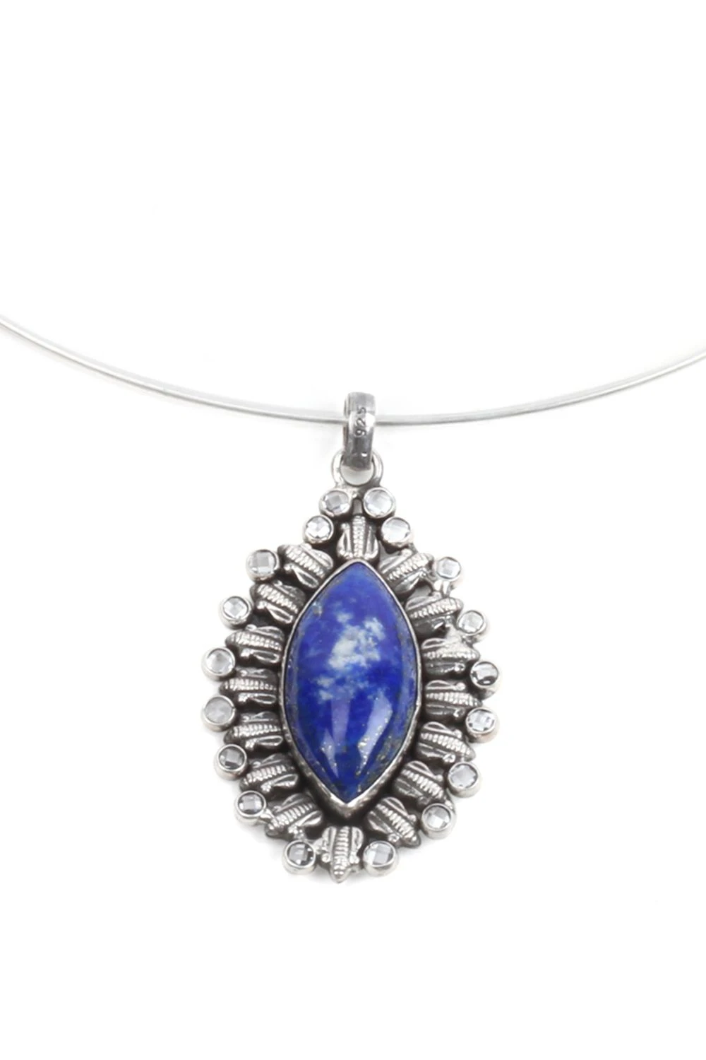 This handcrafted silver pendant necklace is studded with a blue lapis lazuli stone. Style this with a summery kaftan or a breezy maxi dress for an effortlessly stylish look.