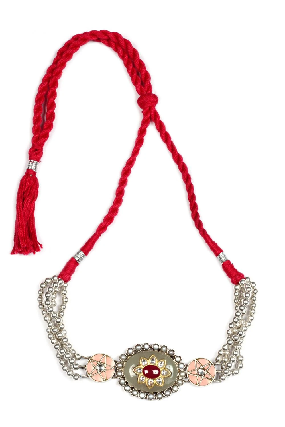Add finesse to your ethnic looks with this elegant choker. Handcrafted in silver, this choker is encrusted with kundan & pearl stones. Adorn it with a sari or kurta set for an elegant look.