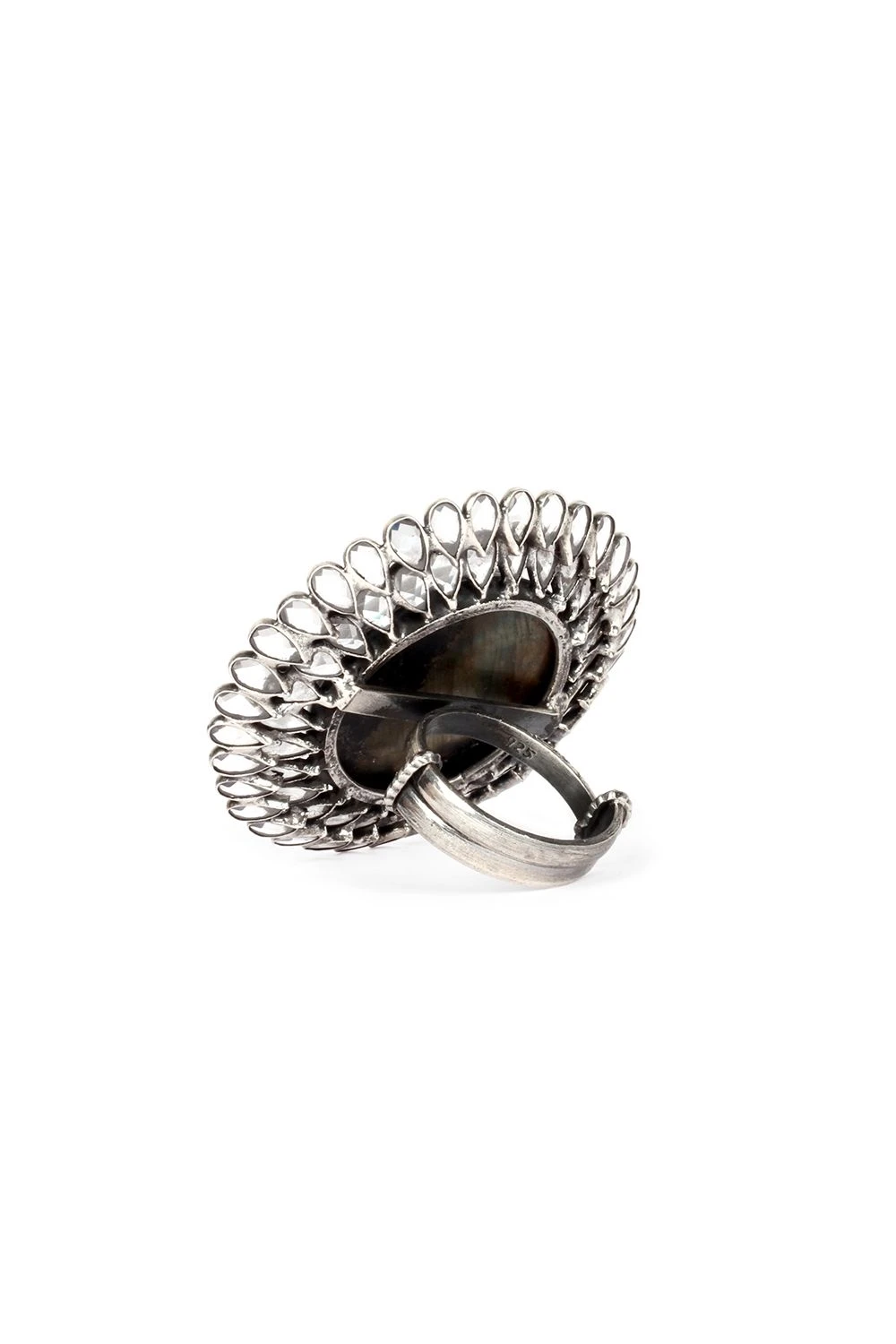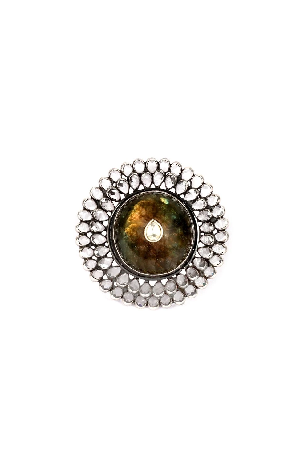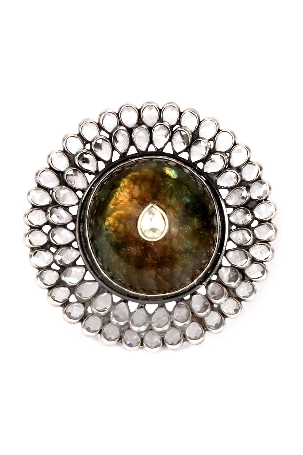 This stylish cocktail ring is handcrafted in silver & embedded with a bright stone. Style it with a graceful sari or kurta set to instantly elevate your look.