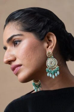 These stylish handcrafted silver stud earrings are plated in 24k gold & embellished with turquoise stones. This piece can be styled with a breezy summer dress or kaftan for an effortlessly chic look.