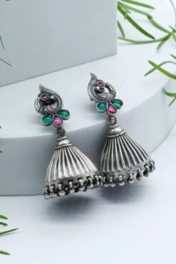 Adorn yourself with these exquisite silver jhumkas, graced with charming tiny ghungroos & elegant gemstones. Elevate your beauty with these luxurious treasures, meticulously designed to enhance your captivating allure.