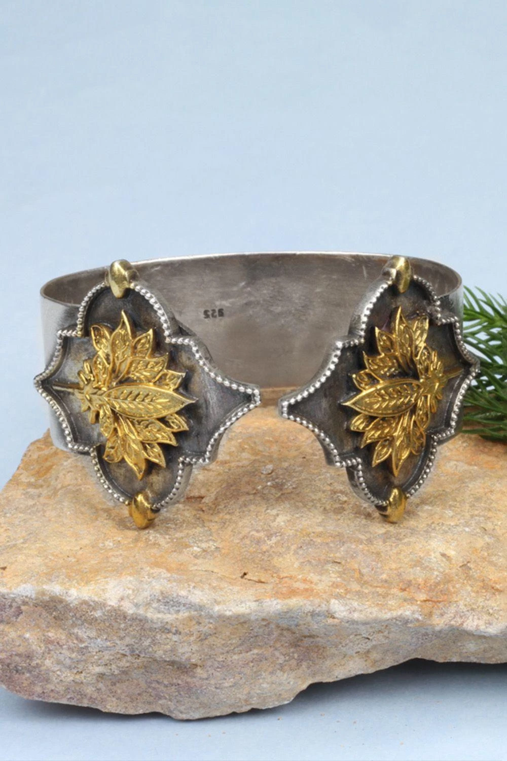 Add a vintage charm to your looks with this adjustable hand cuff. It is handcrafted in silver and accented with 24K gold plating. You can style it with a kaftan or kurta set.