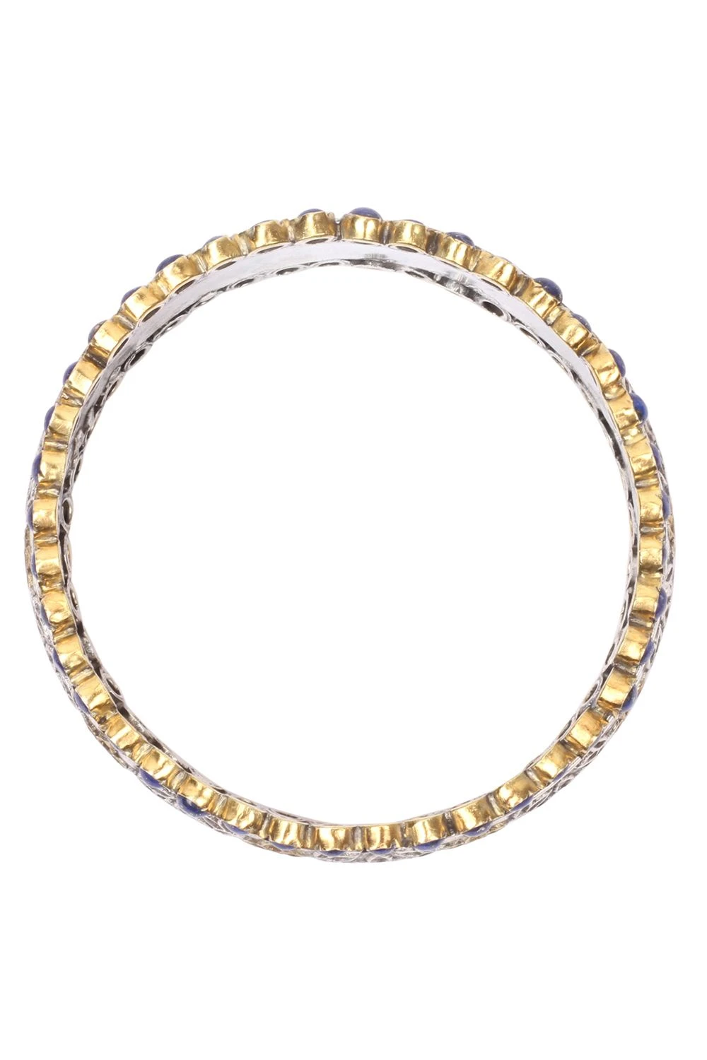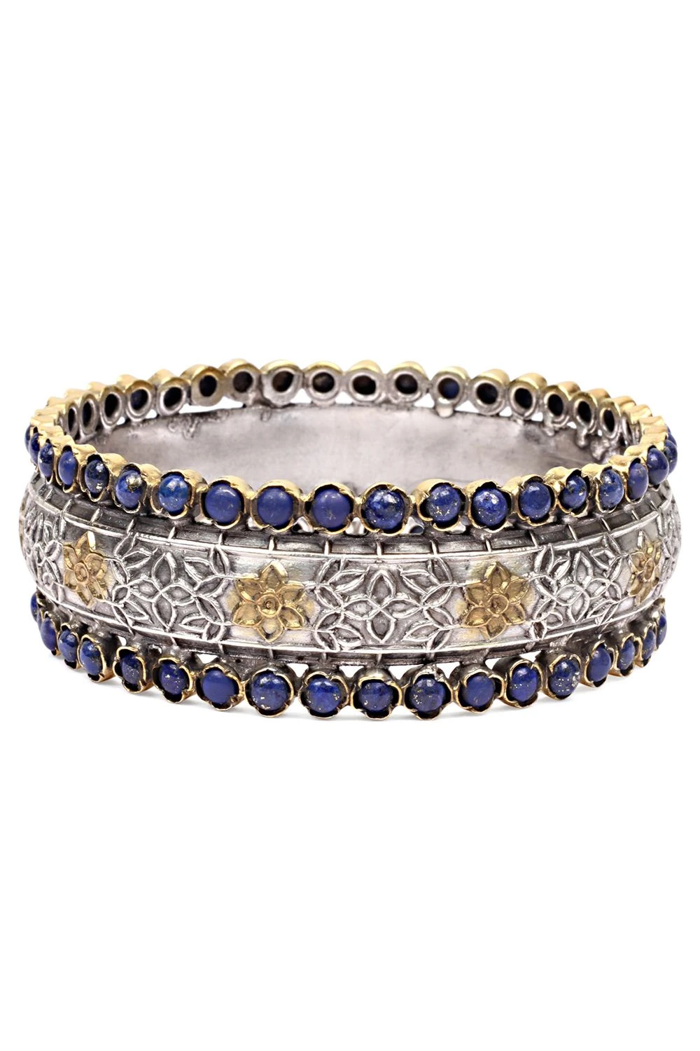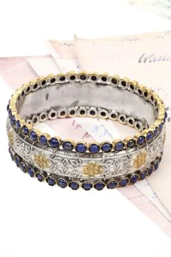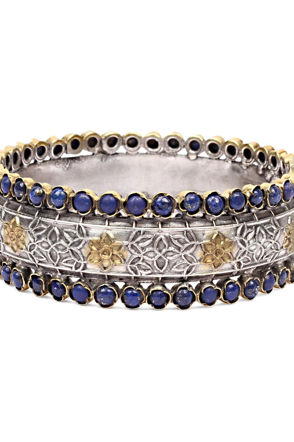 Add an ethnic charm to your looks with this bangle handcrafted in silver and encrusted with lapis lazuli gemstone & florlal handwork. You can style this elegant accessory with both your Indian & contemporary looks.