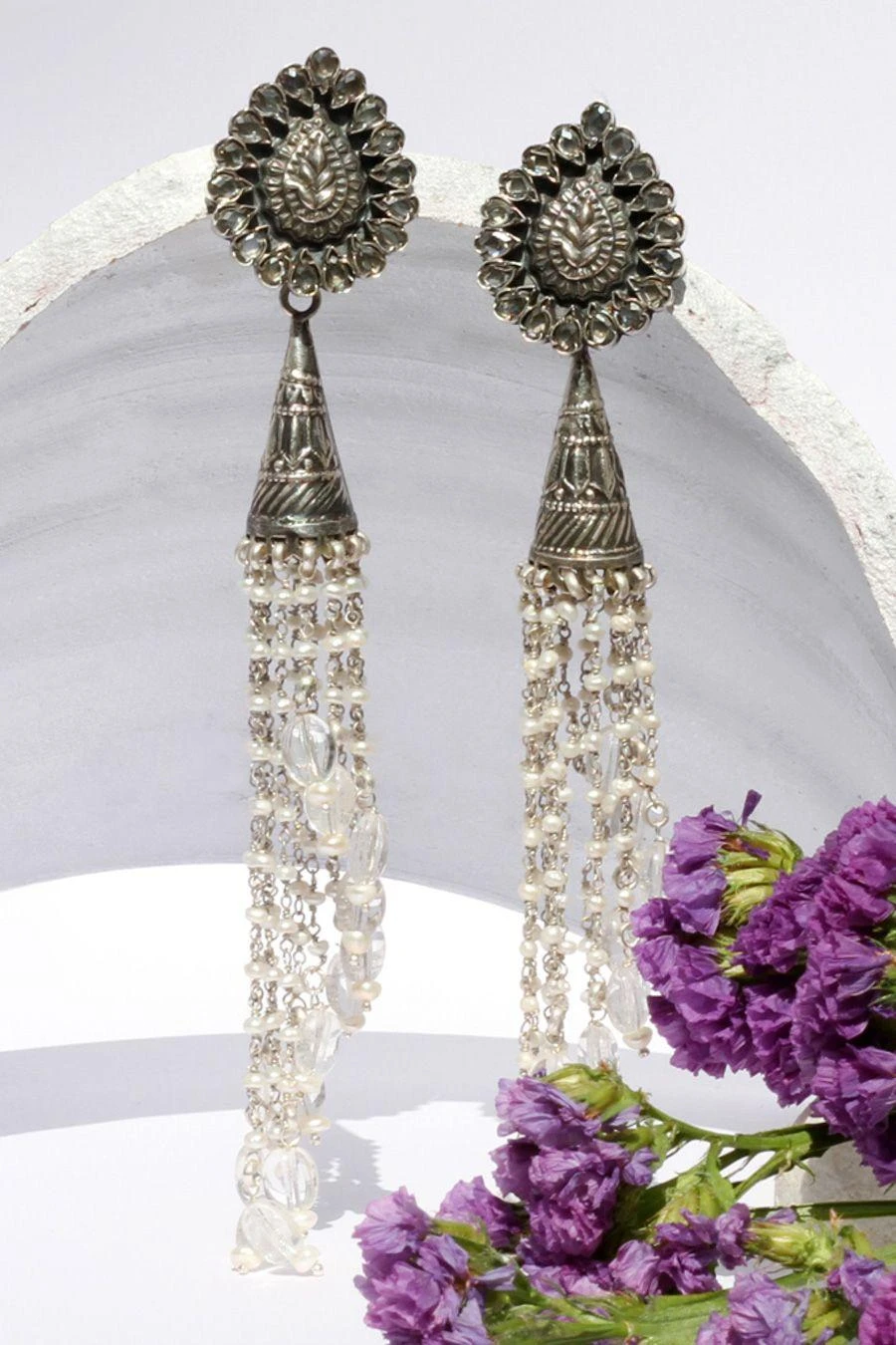 These chic handcrafted silver earrings are the perfect accessory to style with your daytime looks. This piece exudes a bohemian vibe & can be styled with a summer dress or kaftan on your next vacation.