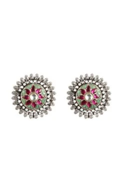 These festive handcrafted silver earrings are embellished with turquoise & cubic zirconia stones creating a colourful floral motif. These stud earrings can be styled with a flowy kaftan or breezy summer dress for an effortlessly chic look.