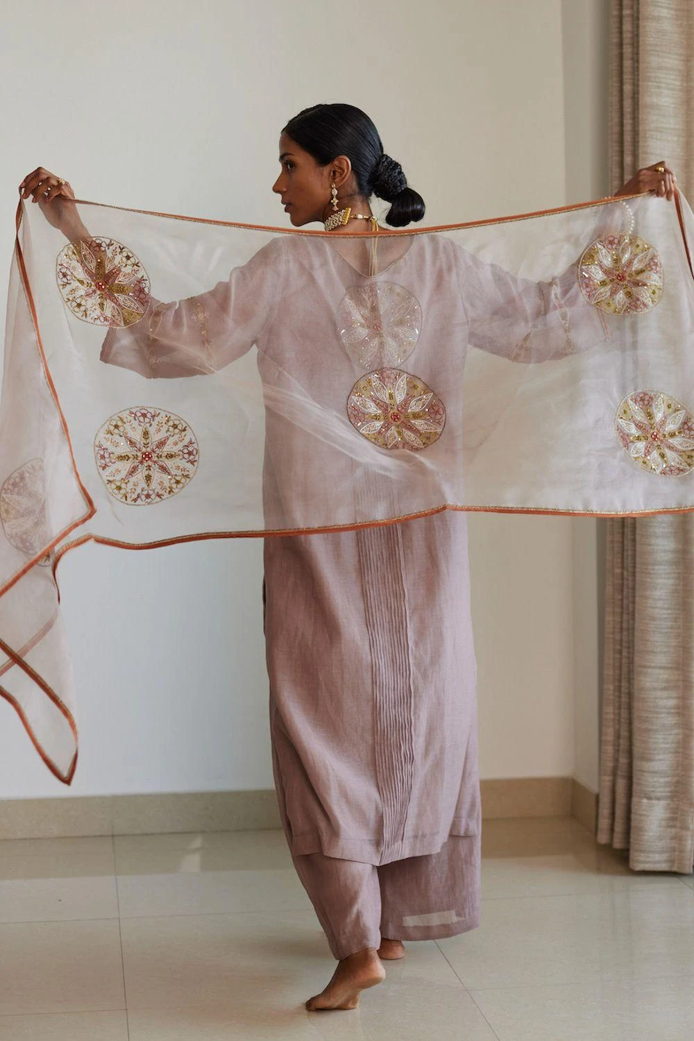 Wrap yourself in the exquisite elegance of this Grey Uday Stole, a versatile accessory that effortlessly elevates your style. Layer it over the Grey Uday Kurta Set from the collection to complete the set.