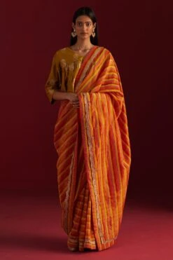 Elevate your festive style with the Zoya Sari, adorned with a stunning lace work and delicate embroidery.